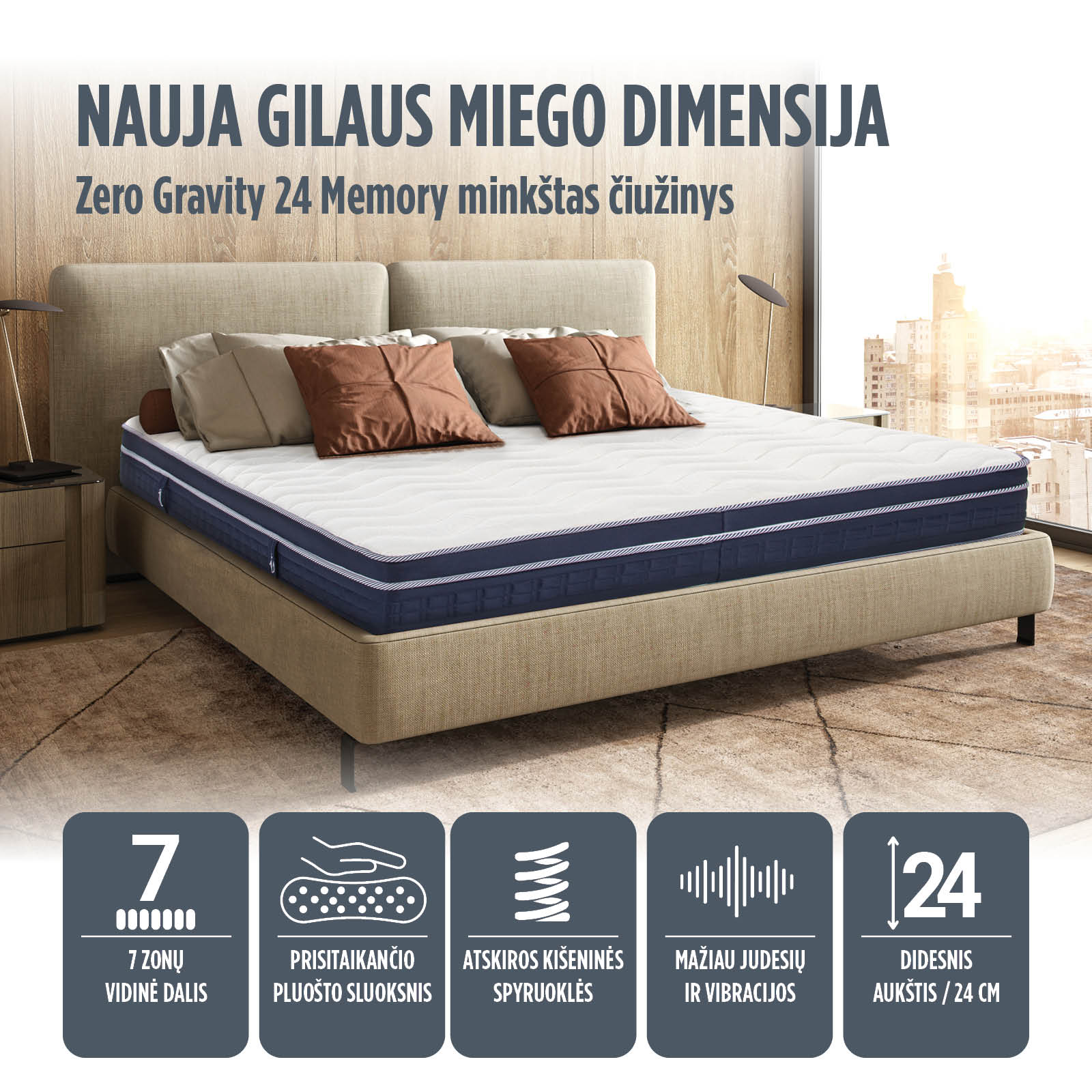 Kišeninis spyruoklinis čiužinys „Vitapur Zero Gravity 24 Memory“