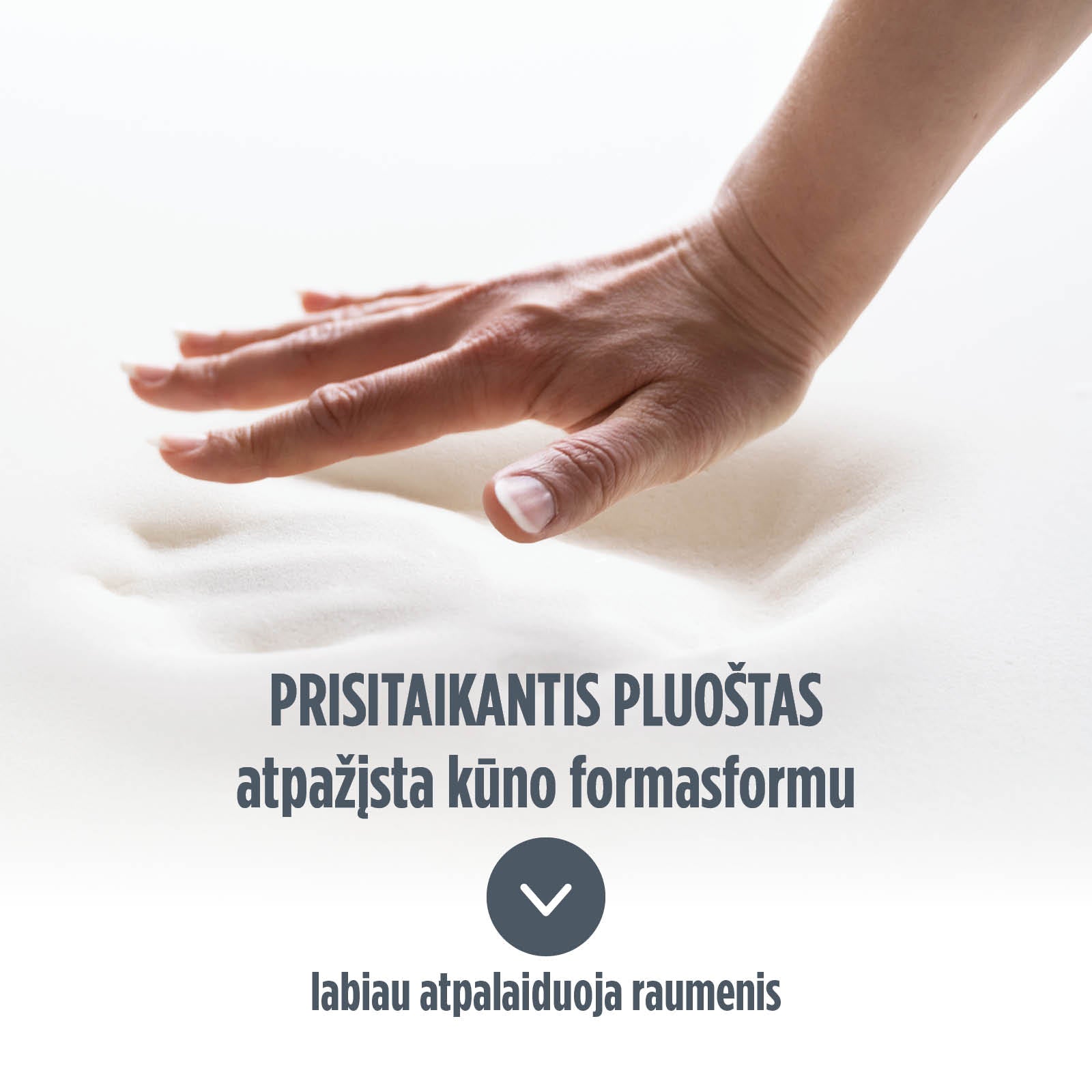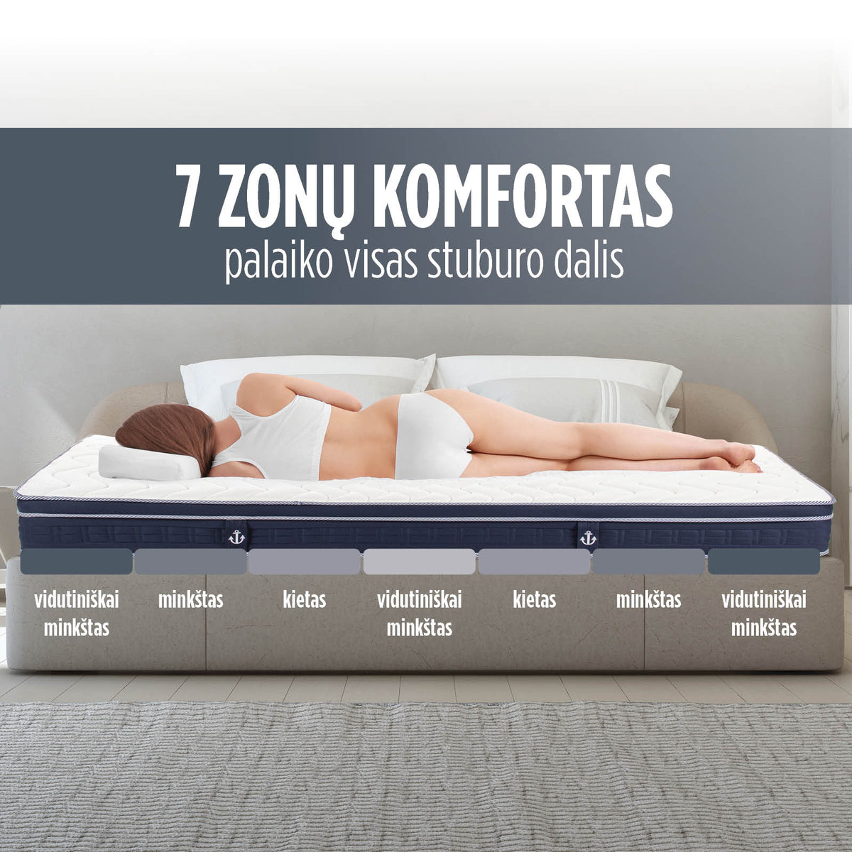 - 7 zonų kišeninis čiužinys su prisitaikančiu pluoštu, kad dar patogiau miegotumėte naktį.