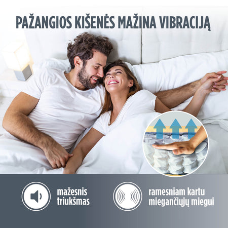 Naujoviškos atskiros kišenės sumažina čiužinio vibracijas ir triukšmą jums ar jūsų partneriui judant, kai miegate. Taip pat puikiai tinka dvigulėms lovoms ir tiems, kurie nori ramiai išsimiegoti naktį.