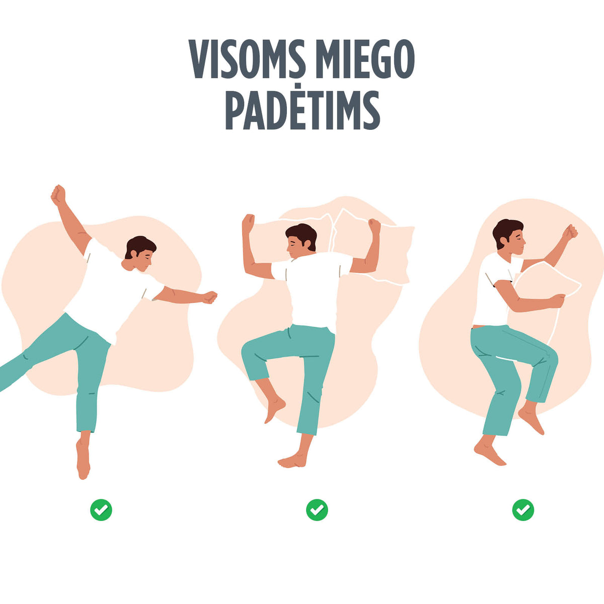 - Kad ir kokioje padėtyje miegotumėte, čiužinys užtikrins idealią minkštumo, kietumo ir atramos pusiausvyrą.