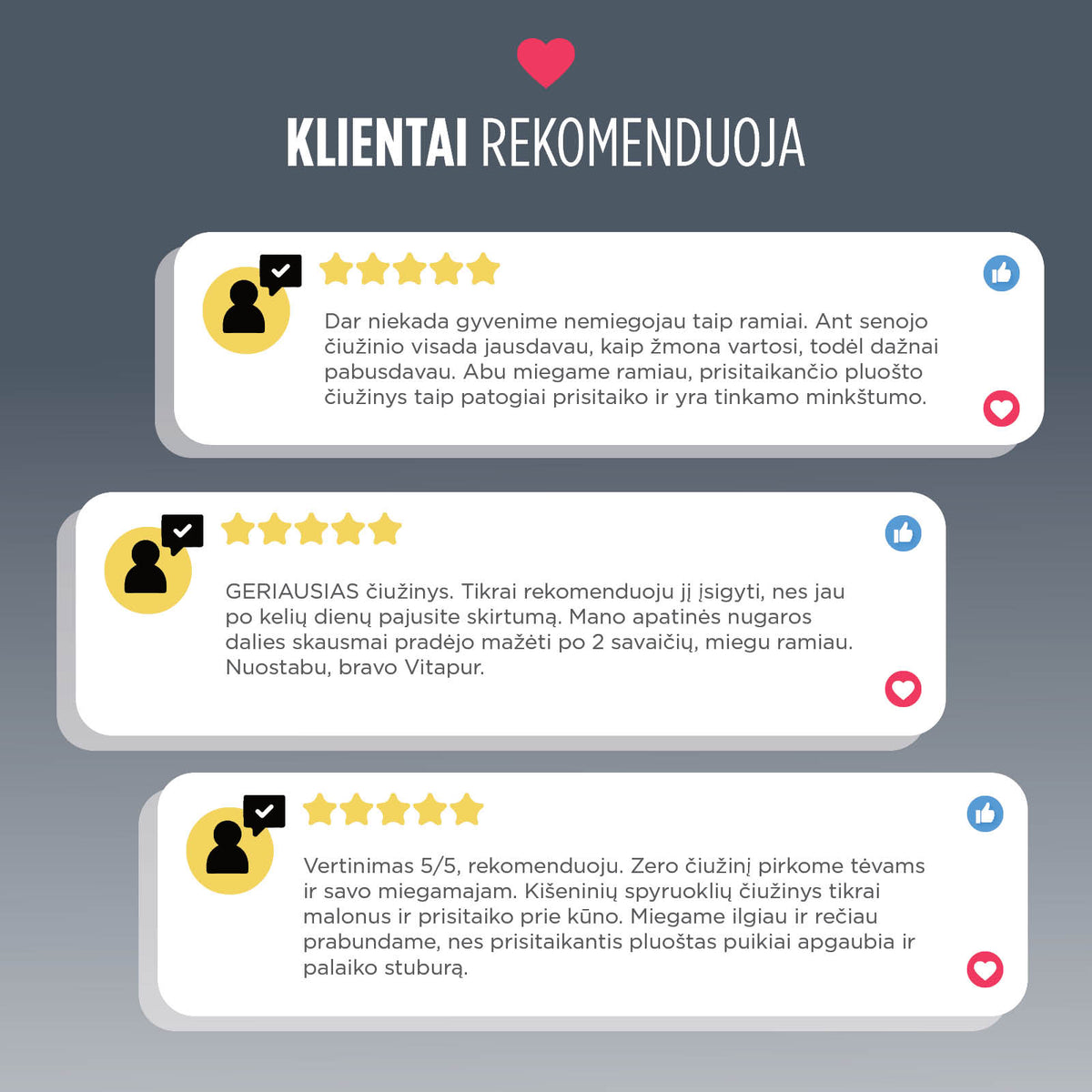- Kišeninės spyruoklės puikiai palaiko kiekvieną kūno dalį.
