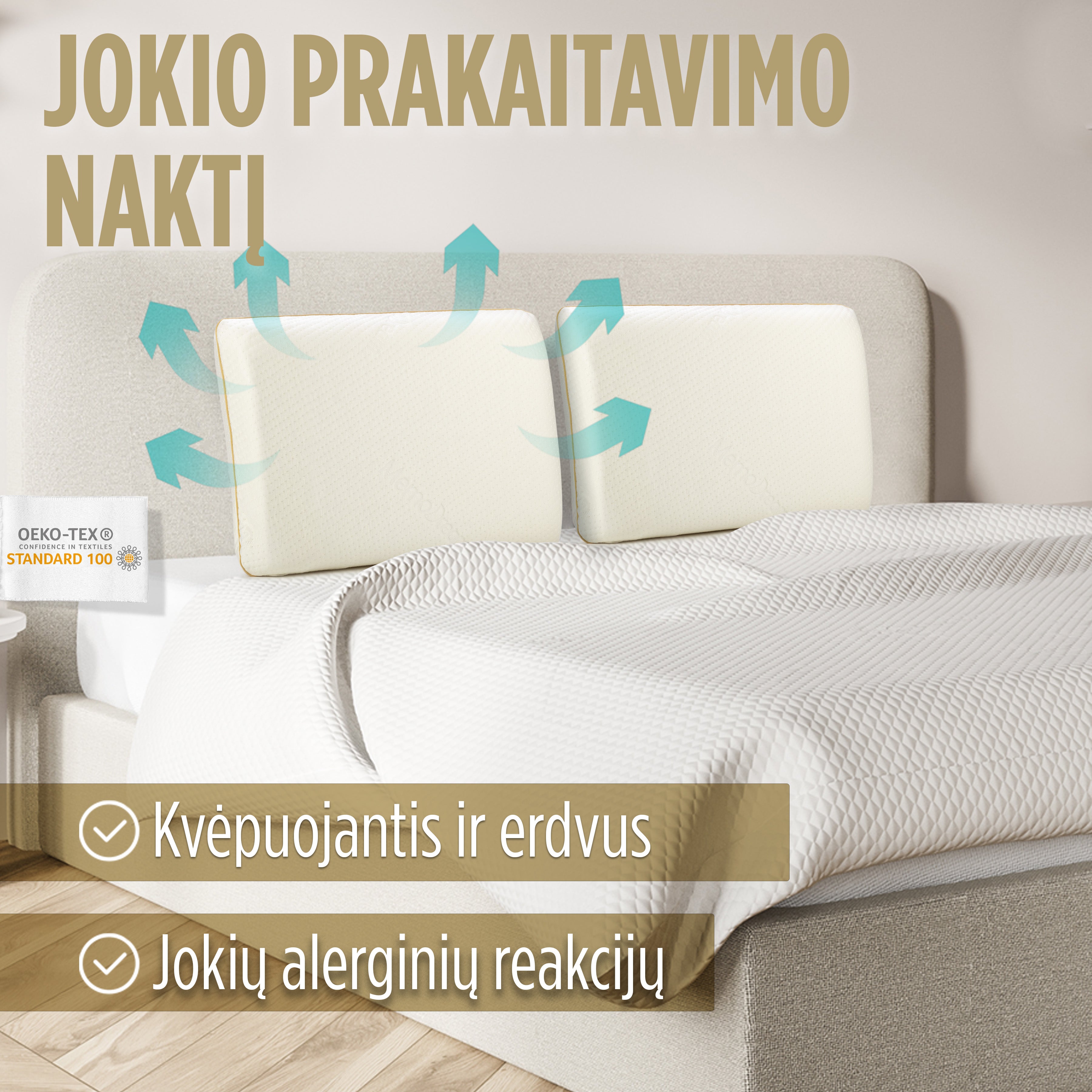 Praleidžia orą ir užtikrina sausą miego aplinką.