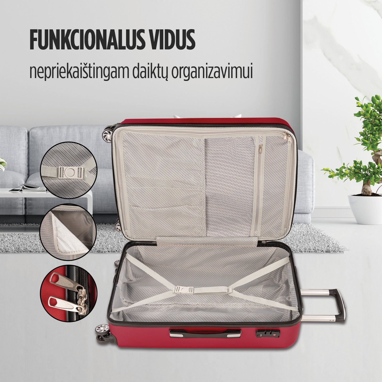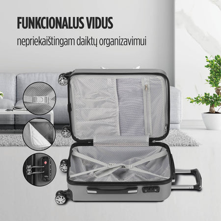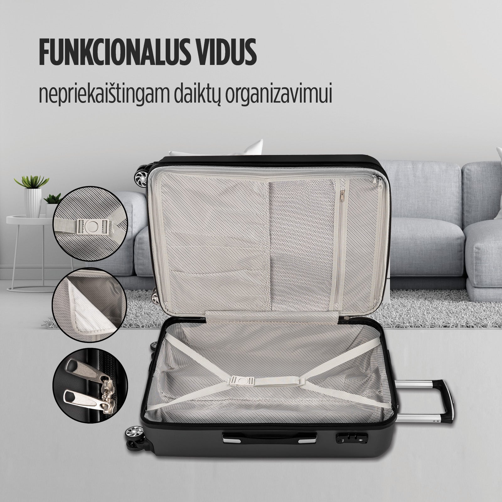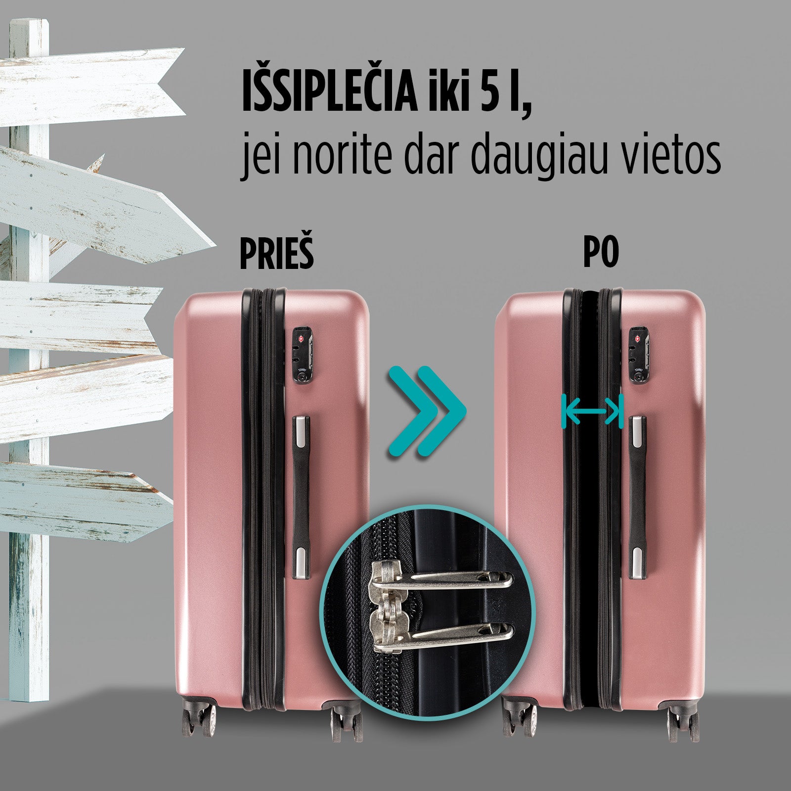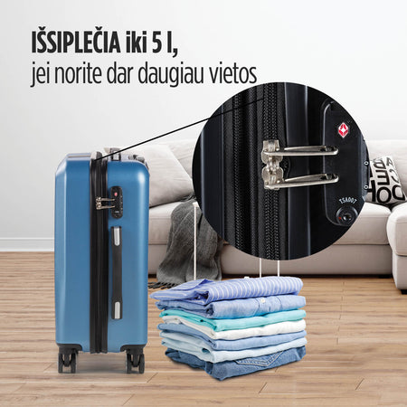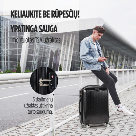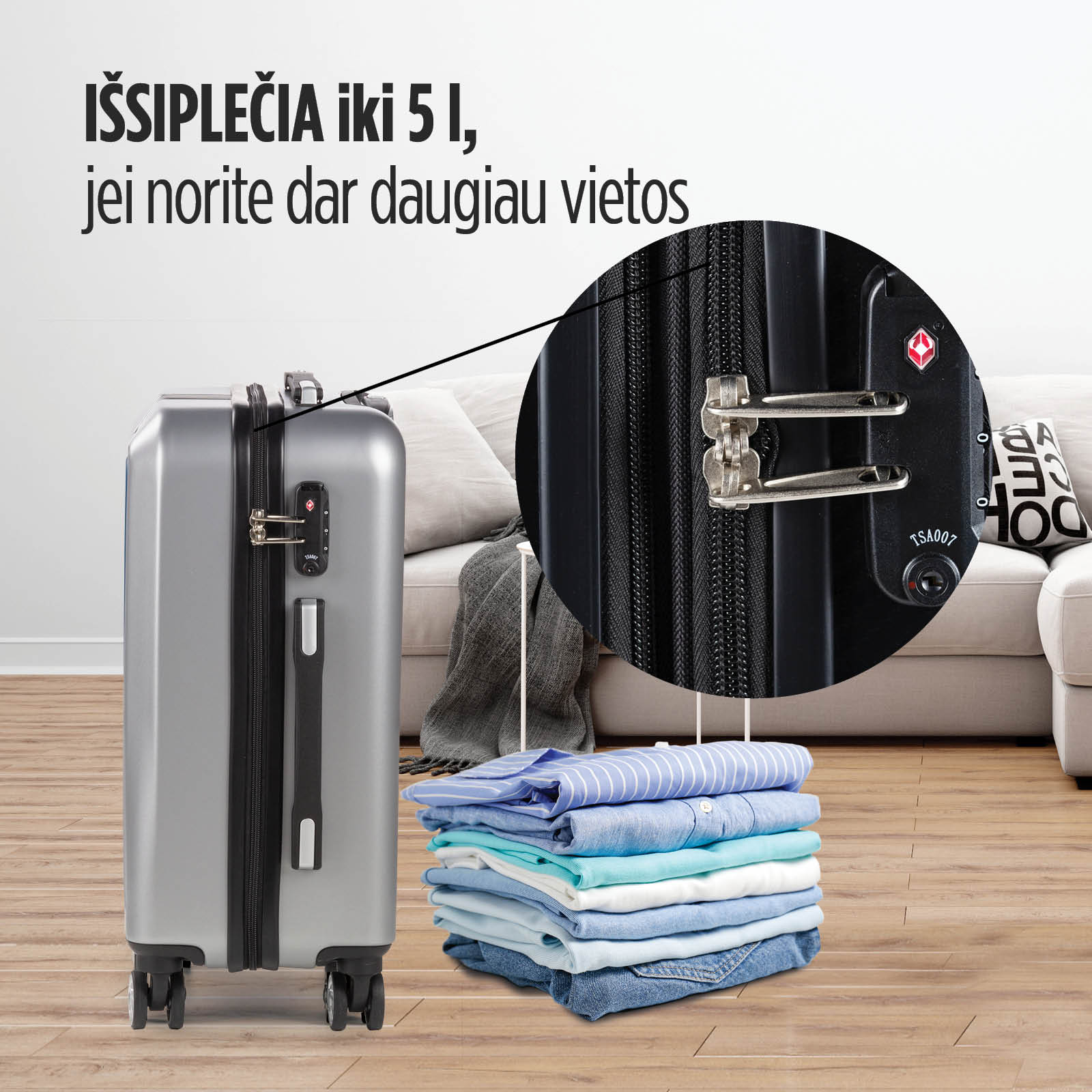 Integruotas 3 skaitmenų TSA užraktas užtikrina saugų laikymą ir dar daugiau nerūpestingų atostogų dienų. TSA spyna ypač palengvina keliones į JAV, kur lagaminai per patikrinimą atidaromi specialiu raktu nepažeidžiant spynos.
