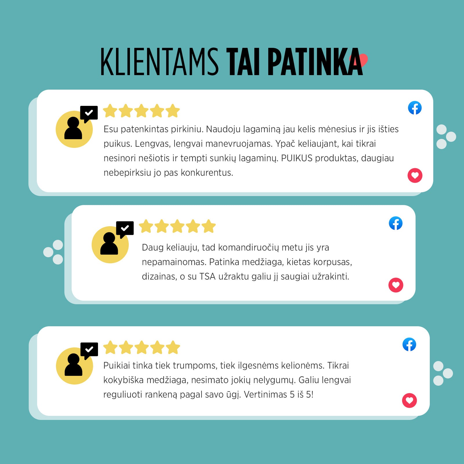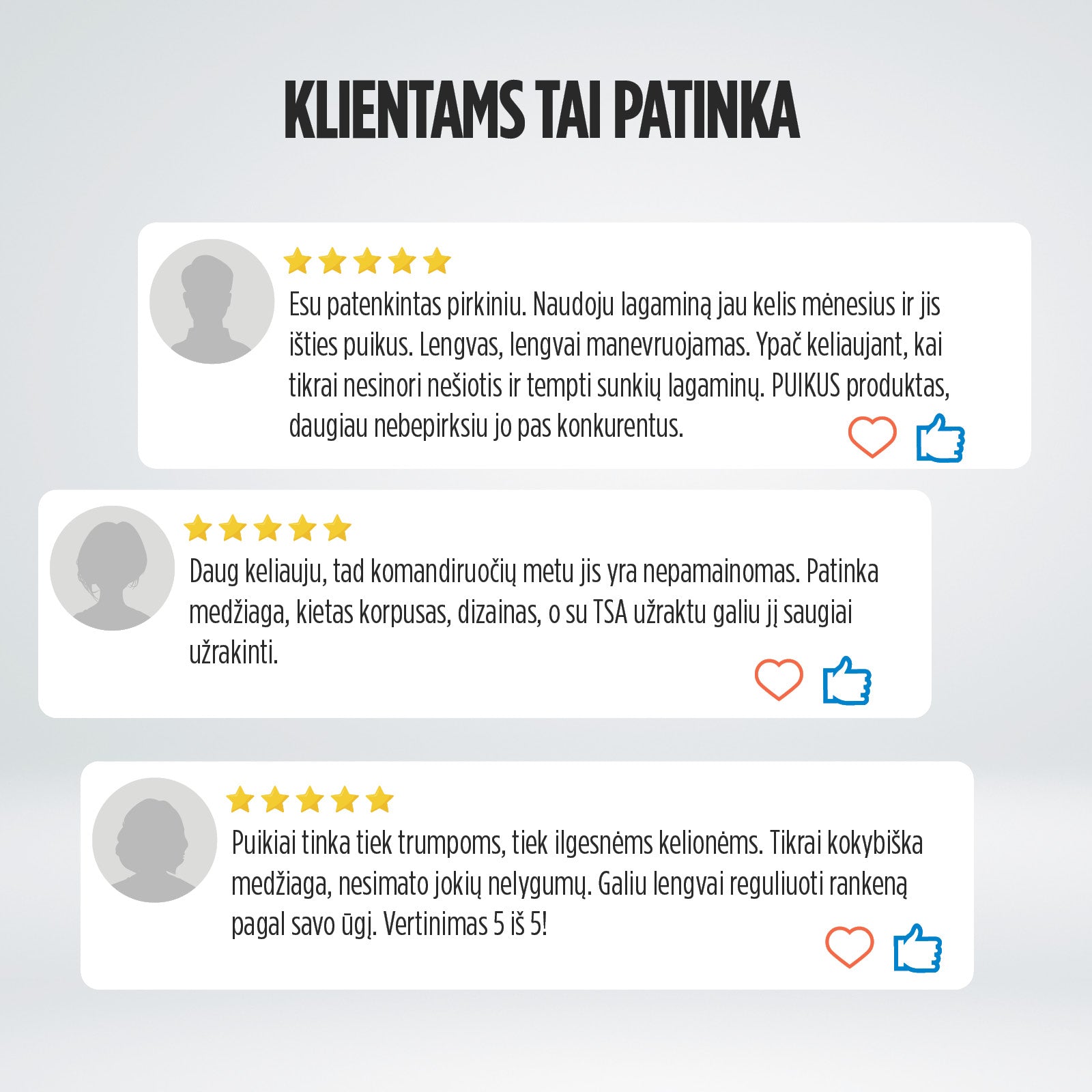 - Reguliuojama teleskopinė rankena leidžia lengvai gabenti net sunkiausią bagažą.