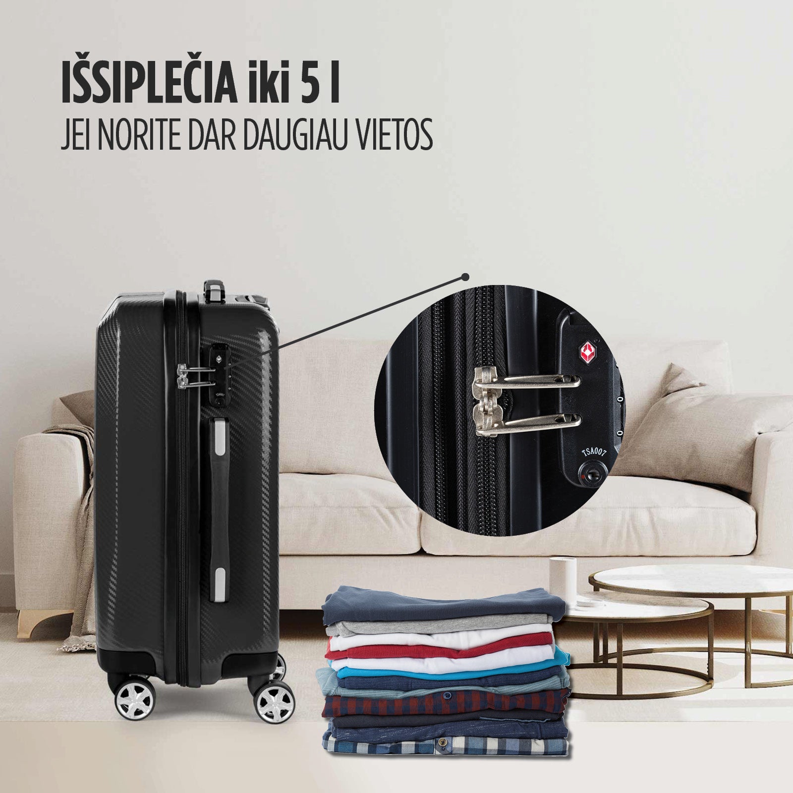 „Scandinavia Carbon“ serija apjungia viską, ko tik galite norėti: erdvų interjerą, ilgaamžiškumą, naujoves, saugumą ir eleganciją. Nerūpestingos kelionės su erdviais 60 litrų lagaminais garantuotos.