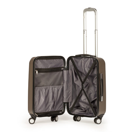 Elegantiškas, lengvas ir patogus nešiotis – šis kietojo korpuso lagaminas, pagamintas iš aukščiausios kokybės ABS plastiko, apsaugos tavo daiktus, todėl taps puikiu palydovu kiekvienoje kelionėje. Išskirtinį praktiškumą užtikrina reguliuojama teleskopinė rankena, kuri palengvina net sunkiausio bagažo transportavimą. Lagaminas pasižymi keturiais dvigubais 360° pasukamais ratukais, kurie leidžia judėti tyliai ir saugiai bet kuria kryptimi, be užstrigimų.