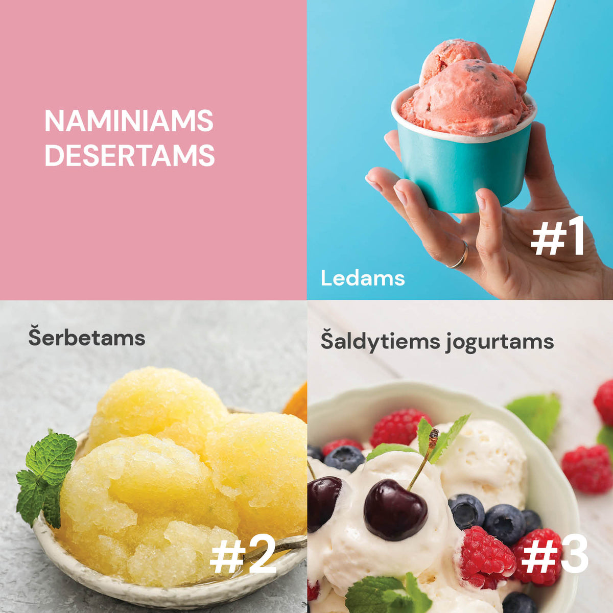 - Sprendimas greitam naminių ledų paruošimui vos per 20 minučių.
