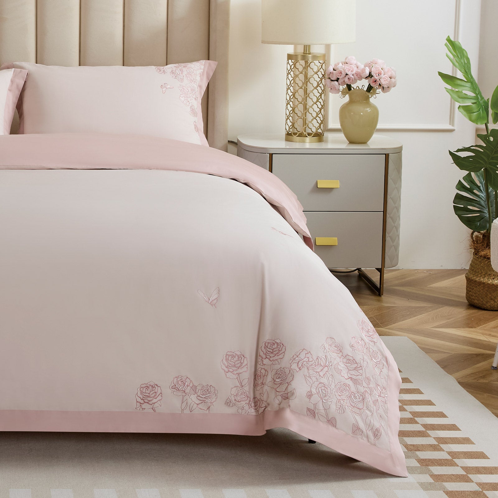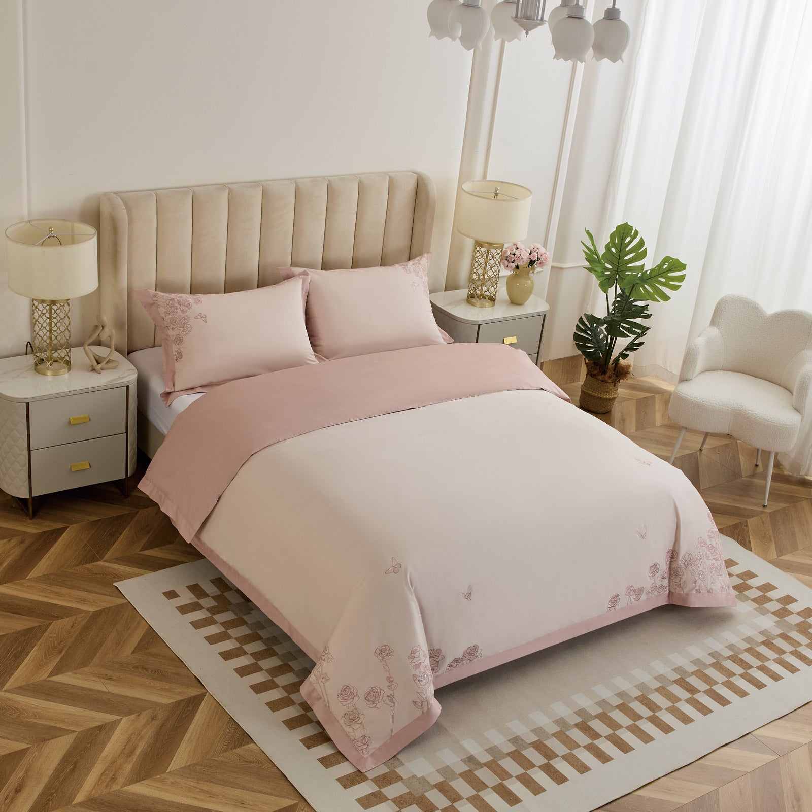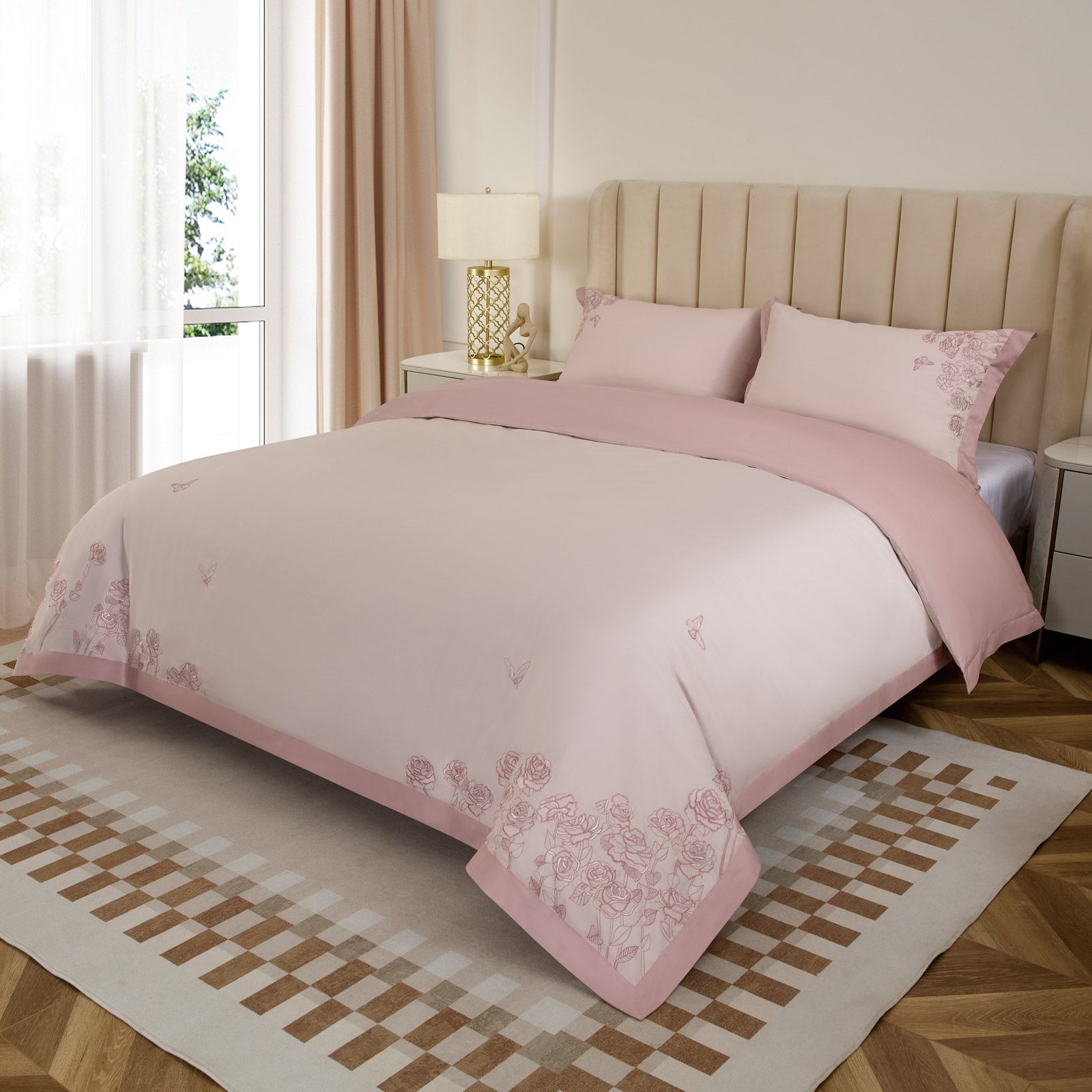 - PREMIUM siuvinėta patalynė iš 100 % egiptietiškos medvilnės.