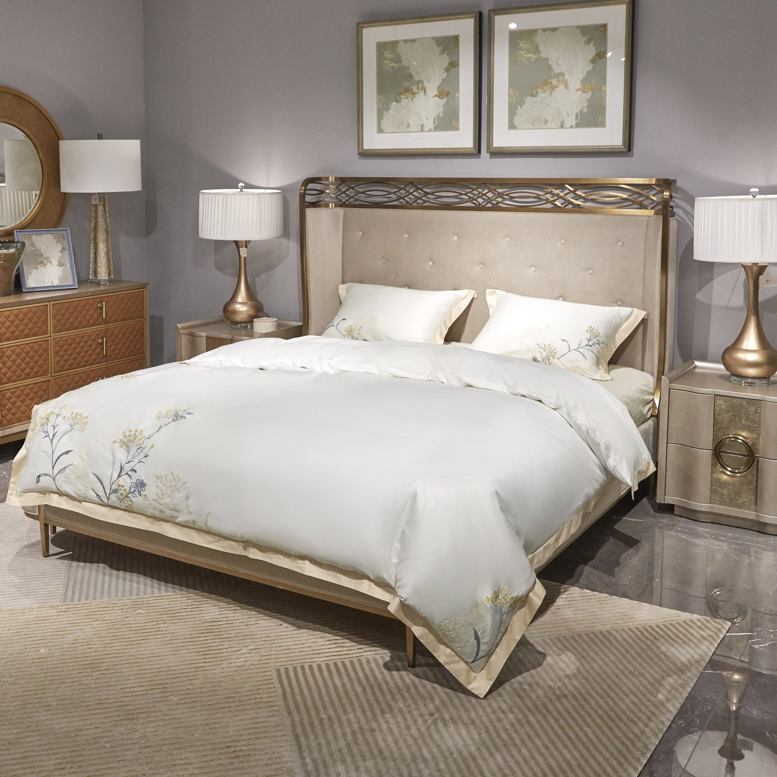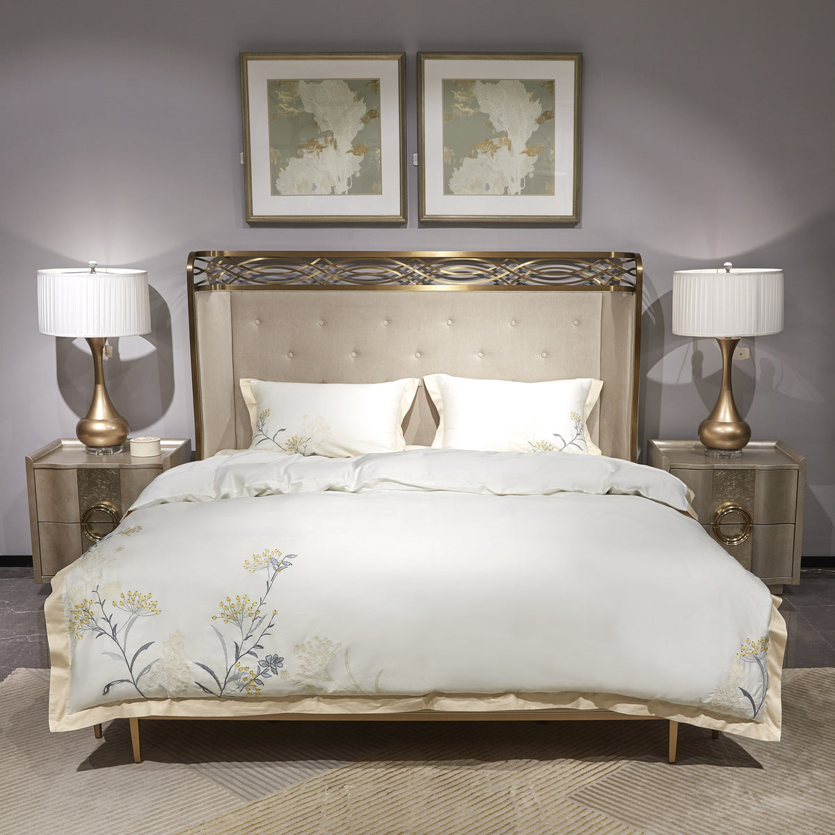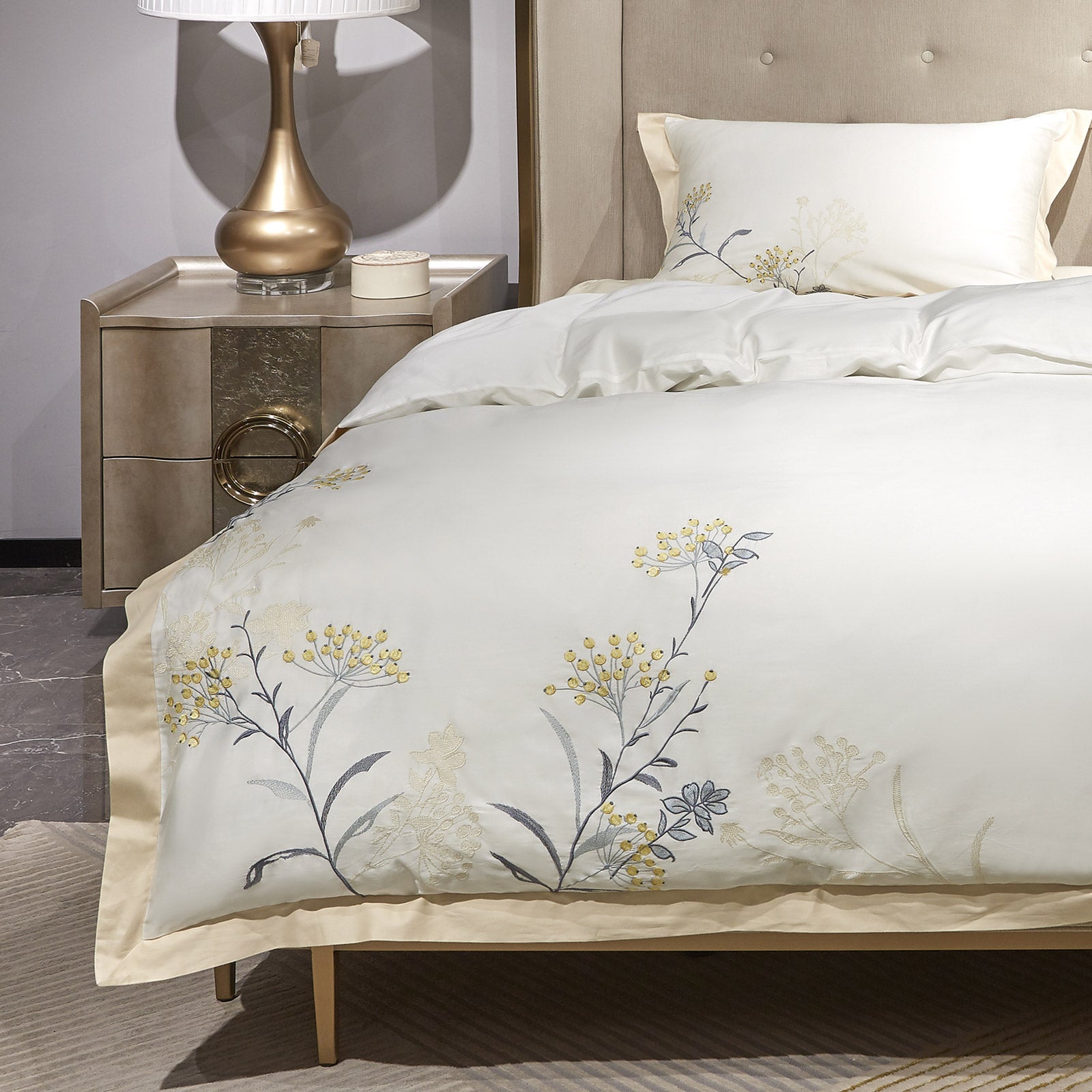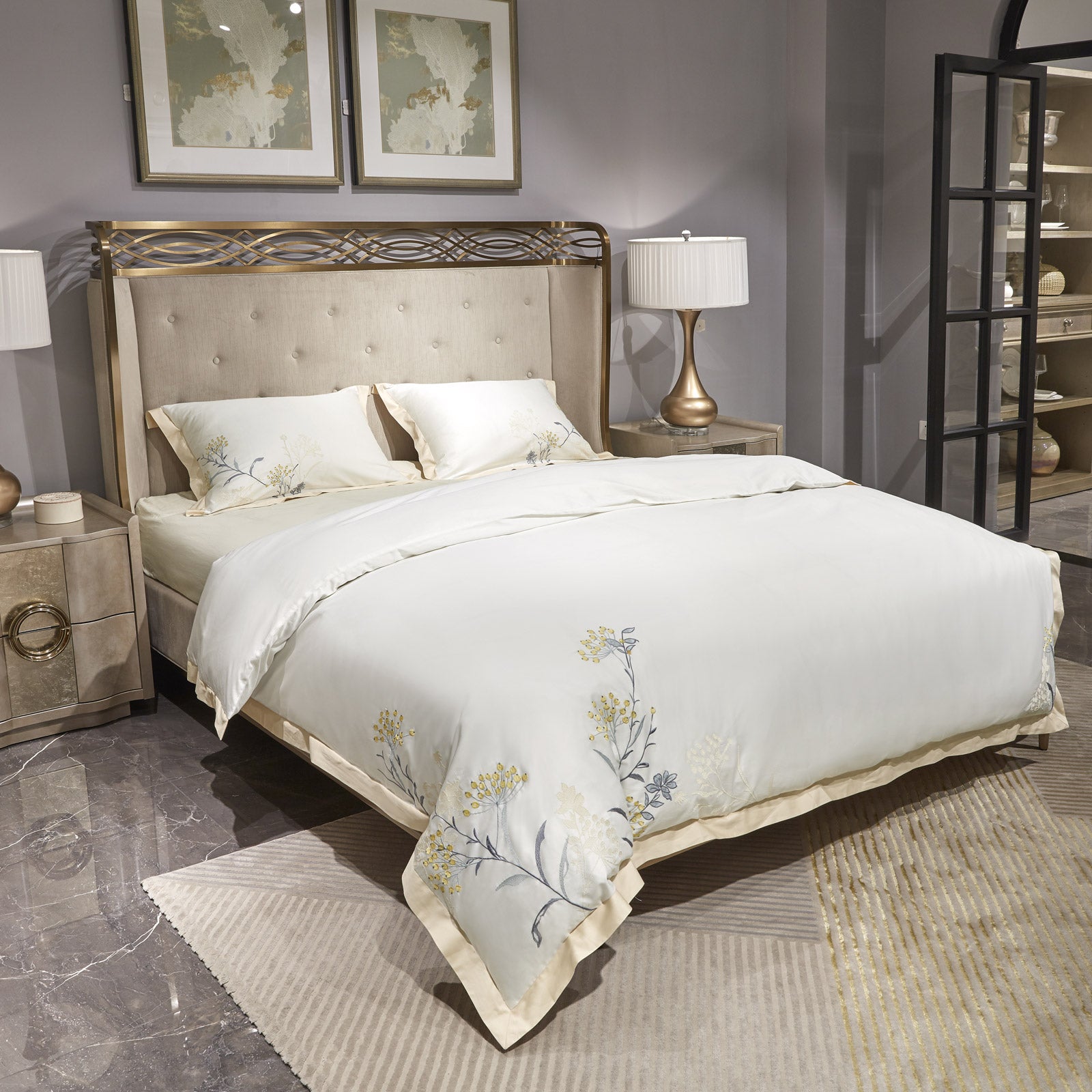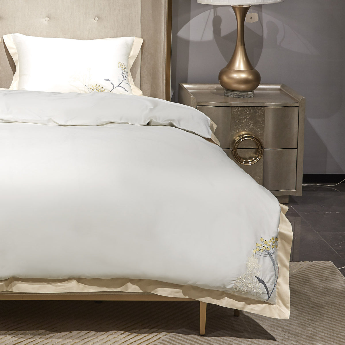 - PREMIUM siuvinėta patalynė iš 100 % egiptietiškos medvilnės.