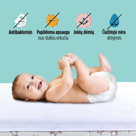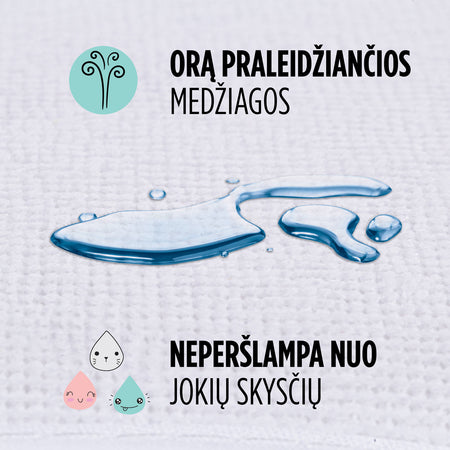 Vandeniui atspari čiužinio apsauga veiksmingai apsaugo nuo dėmių, purvo, prakaito ir kitų skysčių. Naudojant šį gaminį jūsų vaiko čiužinys bus apsaugotas visam laikui.