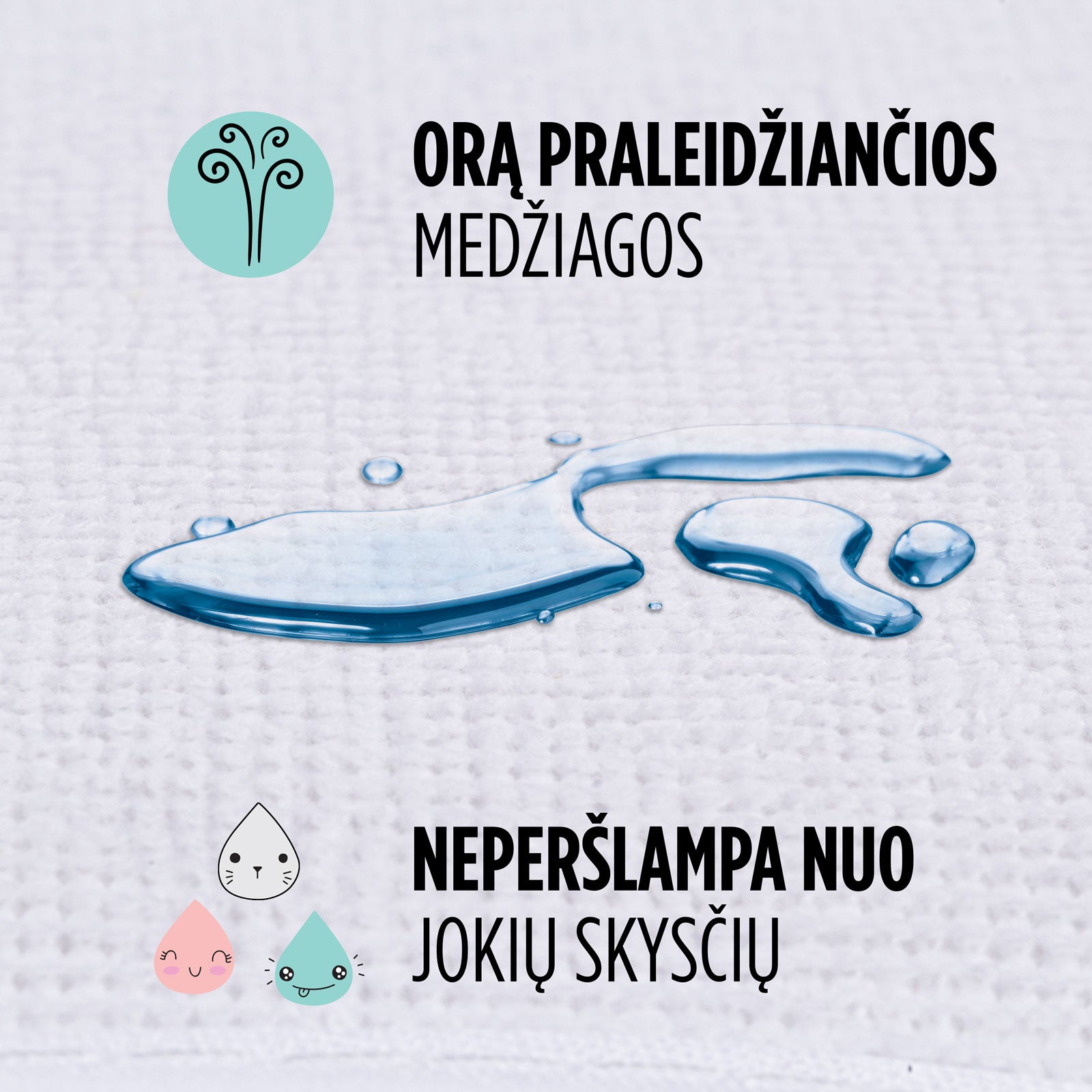 - Nors apsauga yra neperšlampama, ji praleidžia orą ir vandens garus.