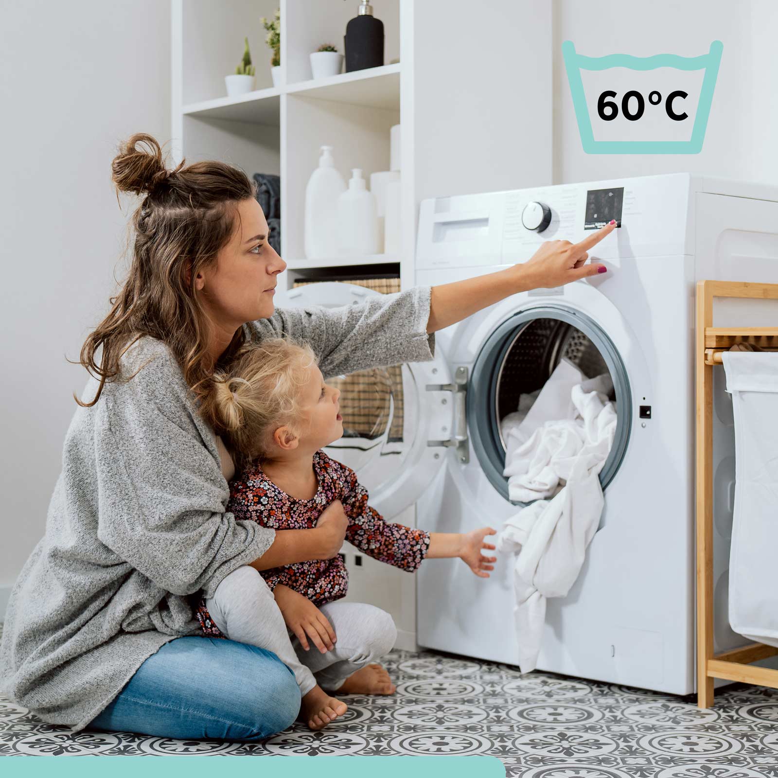 Mažieji visada miegos švarioje aplinkoje, nes apsaugą lengva prižiūrėti. Ją galima skalbti skalbimo mašinoje 60 °C temperatūroje, todėl pašalinama dauguma dulkių erkučių.