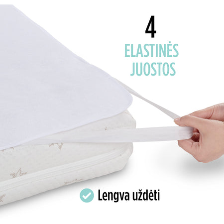 Vaikiško čiužinio apsauga visada liks savo vietoje. 4 elastingi dirželiai, kad būtų lengva pritvirtinti, puikiai prilaiko čiužinio kraštus.
