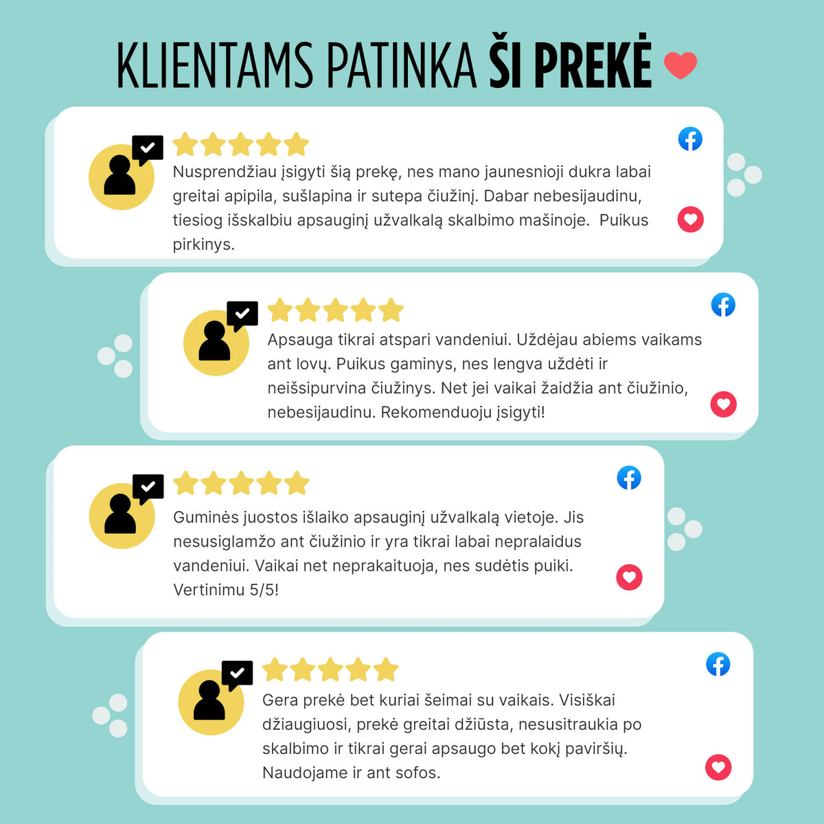 - Skalbiama apsauga užtikrina aukščiausio lygio higieną.