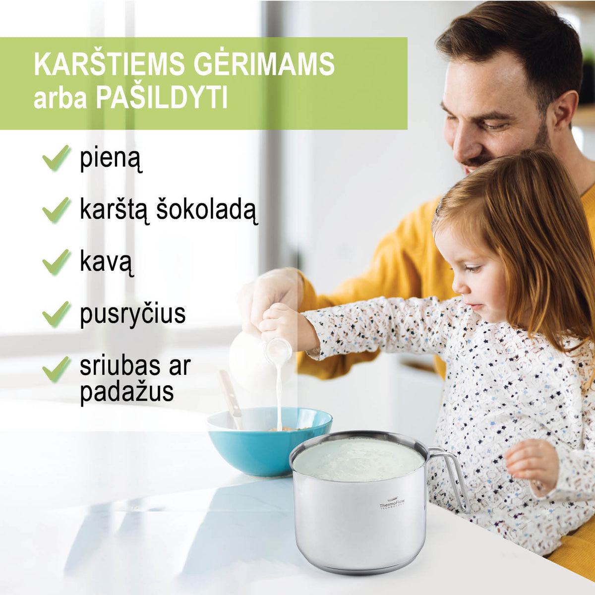 Šiame nepakeičiamame pieno puode lengviau ir greičiau paruošite daugybę įvairių patiekalų, kurie pradžiugins ir pradedančiuosius, ir patyrusius virėjus. Dėl universalios paskirties galėsite šildyti vandenį, pieną, kūdikių maistą, virti pudingą ar sriubą – visa tai viename puode!