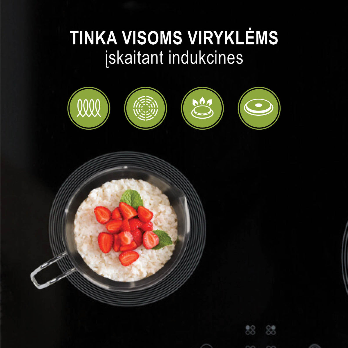 - Tinka visoms kaitlentėms, įskaitant indukcines.