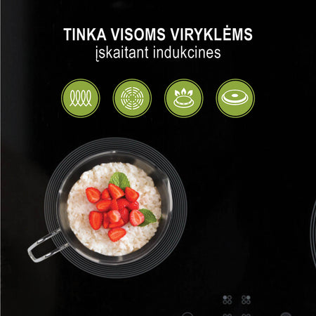 - Tinka naudoti ant visų tipų kaitlenčių, įskaitant indukcines, ir galima plauti indaplovėje.