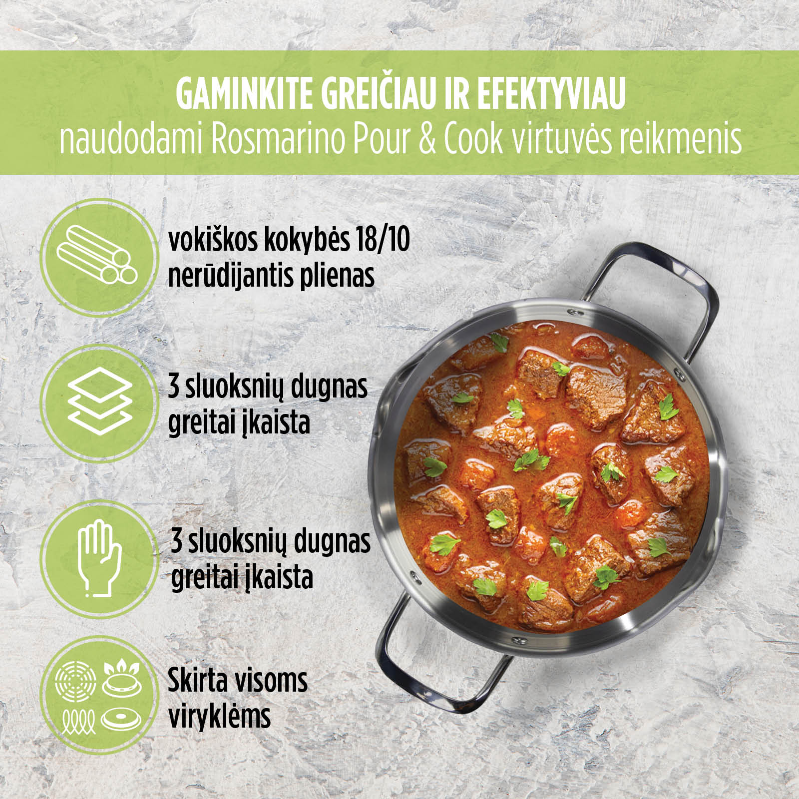 Nerūdijančio plieno puodas su stikliniu dangčiu Rosmarino Pour&Cook II