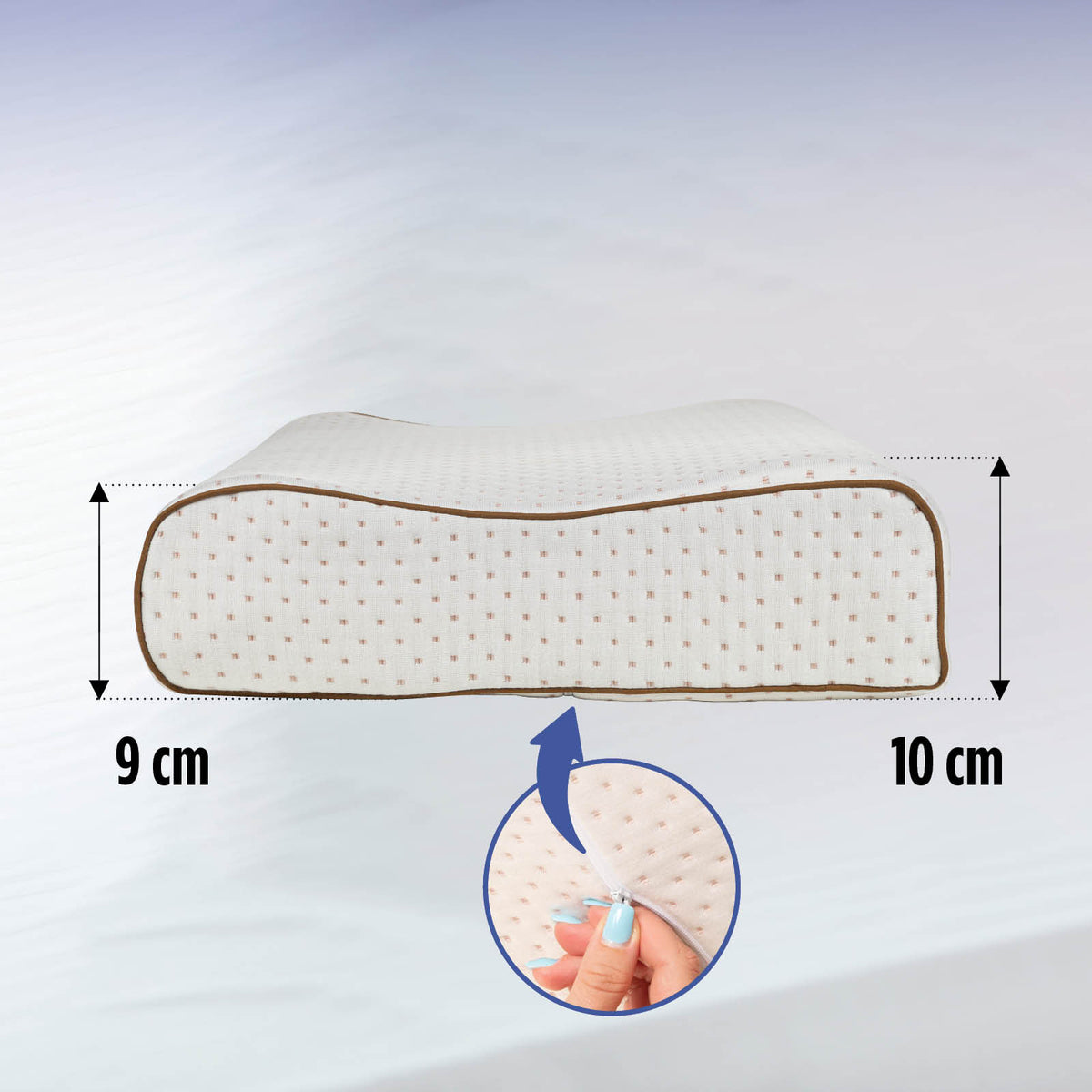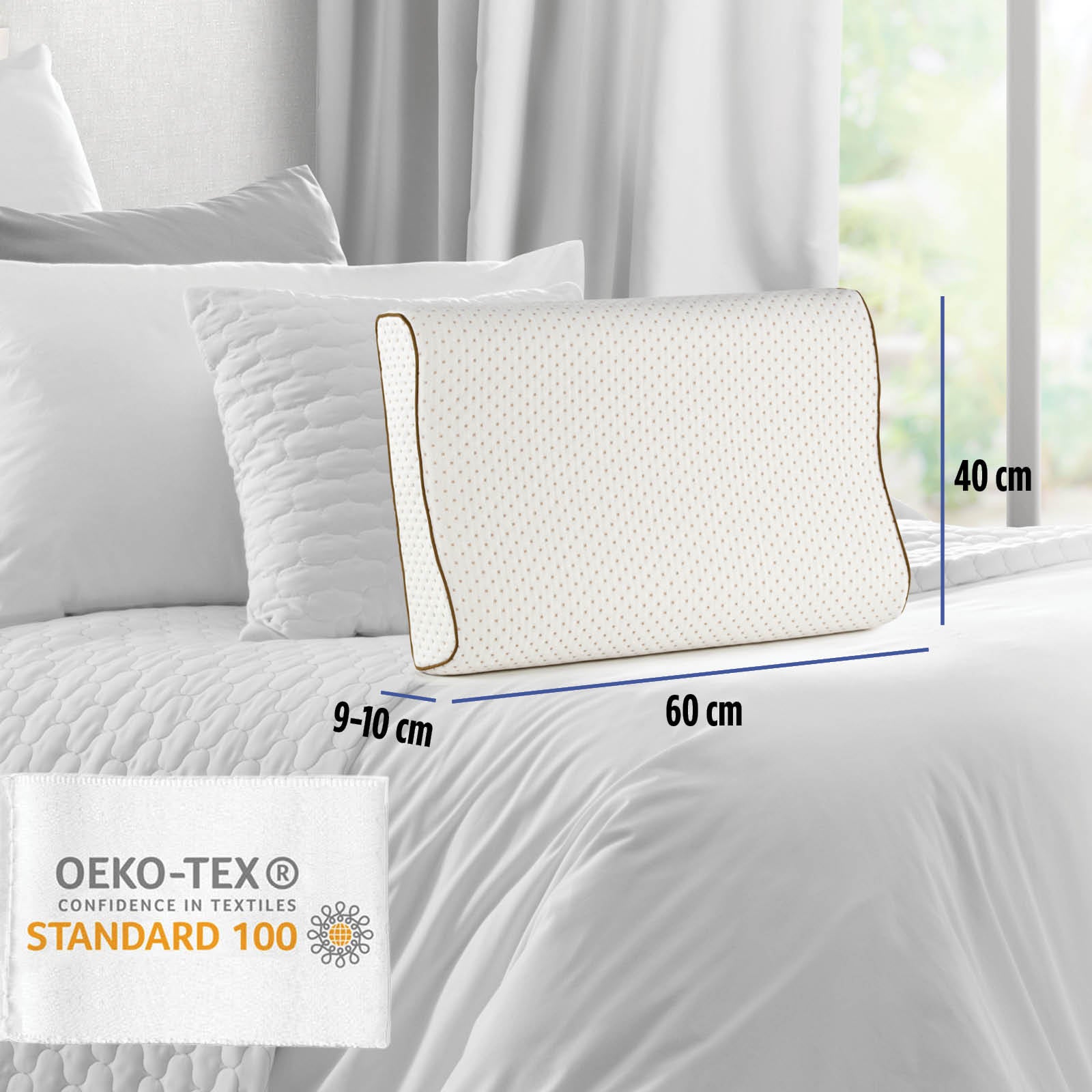 - 100 % lateksas, užtikrinantis lankstumą, idealiai atramą kaklui ir be skausmo.