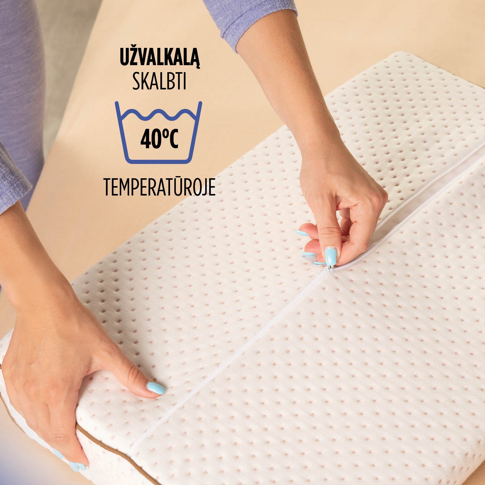 - Pagalvės nuimamas užvalkalas skalbiamas 40 °C temperatūroje, todėl tinka turintiems jautrią ir probleminę odą, alergiškiems* ir sergantiems astma. *Išimtis yra lateksui alergiški žmonės, kuriems pagalvė nerekomenduojama.