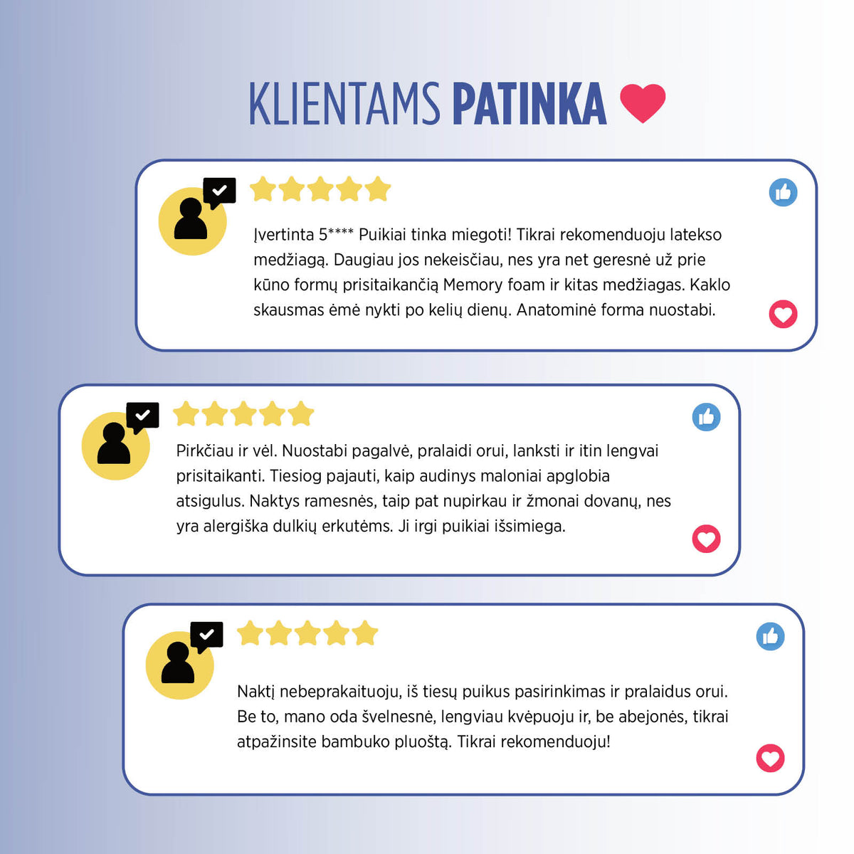 100 % lateksas suteikia nuolatinį palaikymą visą naktį.