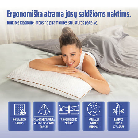 Klasikinė piramidės formos latekso pagalvė yra tinkama pagalvė tiems, kurie nenori pabusti naktį, pageidauja tvirtos kaklo atramos miegant ir labiausiai kvėpuojančių medžiagų. Švelnų masažo pojūtį miego metu suteikia piramidės struktūra, puikiai tinkanti dažnai prabundantiems naktį. Lateksas laikomas aukščiausios kokybės medžiaga, pasižyminčia itin elastinga tekstūra, kuri idealiai tinka stuburo padėčiai, tačiau taip pat yra viena iš patvaresnių medžiagų pagalvių pasaulyje. Ant jo niekada nebus karšta, nes jis užtikrina geresnį oro srautą ir sumažina prakaitavimą naktį. Tinka visoms miego padėtims.
