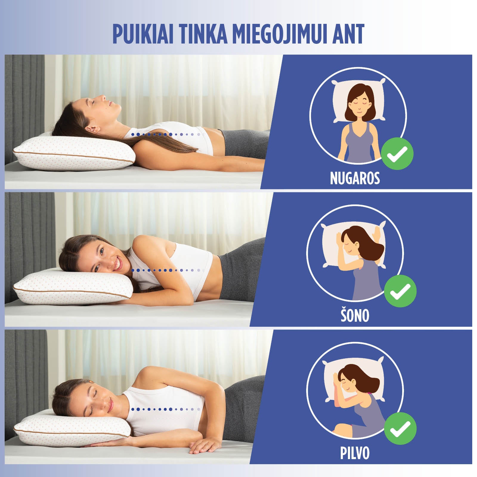 - Latekso pagalvė yra universalus pasirinkimas visoms miego pozicijoms ir tiems, kurie miegodami daug vartotės.