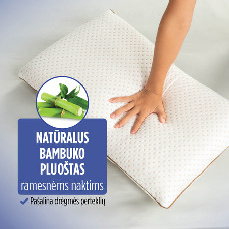 Daugiau kvėpuojančio miego ir mažiau prakaitavimo naktį? Švelnus bambuko pluoštas dangtelyje sukuria oro kišenes, kurios palaiko optimalią temperatūrą ir natūraliai pašalina drėgmę. Tai sukuria sausą ir gaivią miego aplinką.