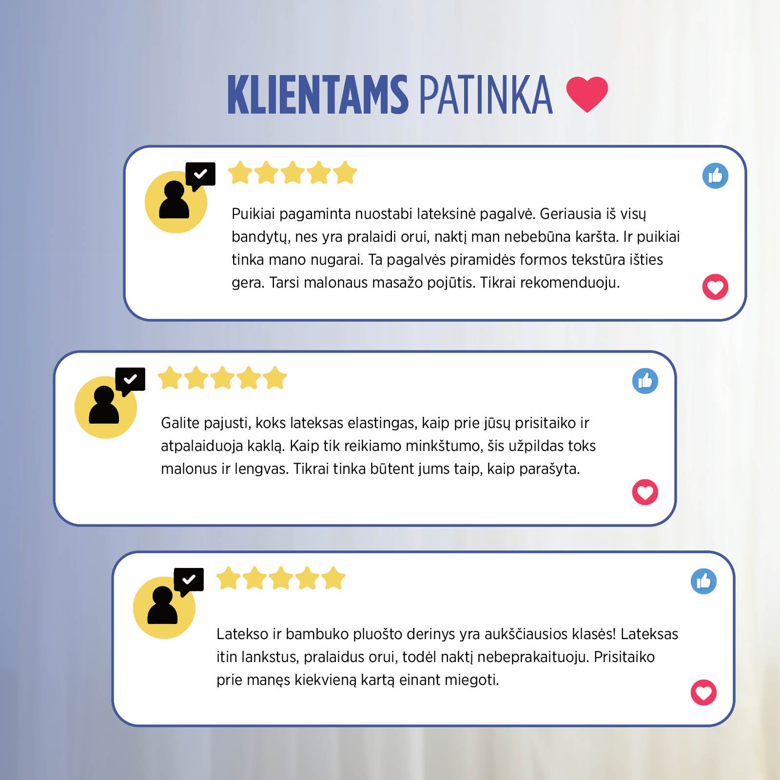 100 % lateksas suteikia tinkamą atramą visą naktį.