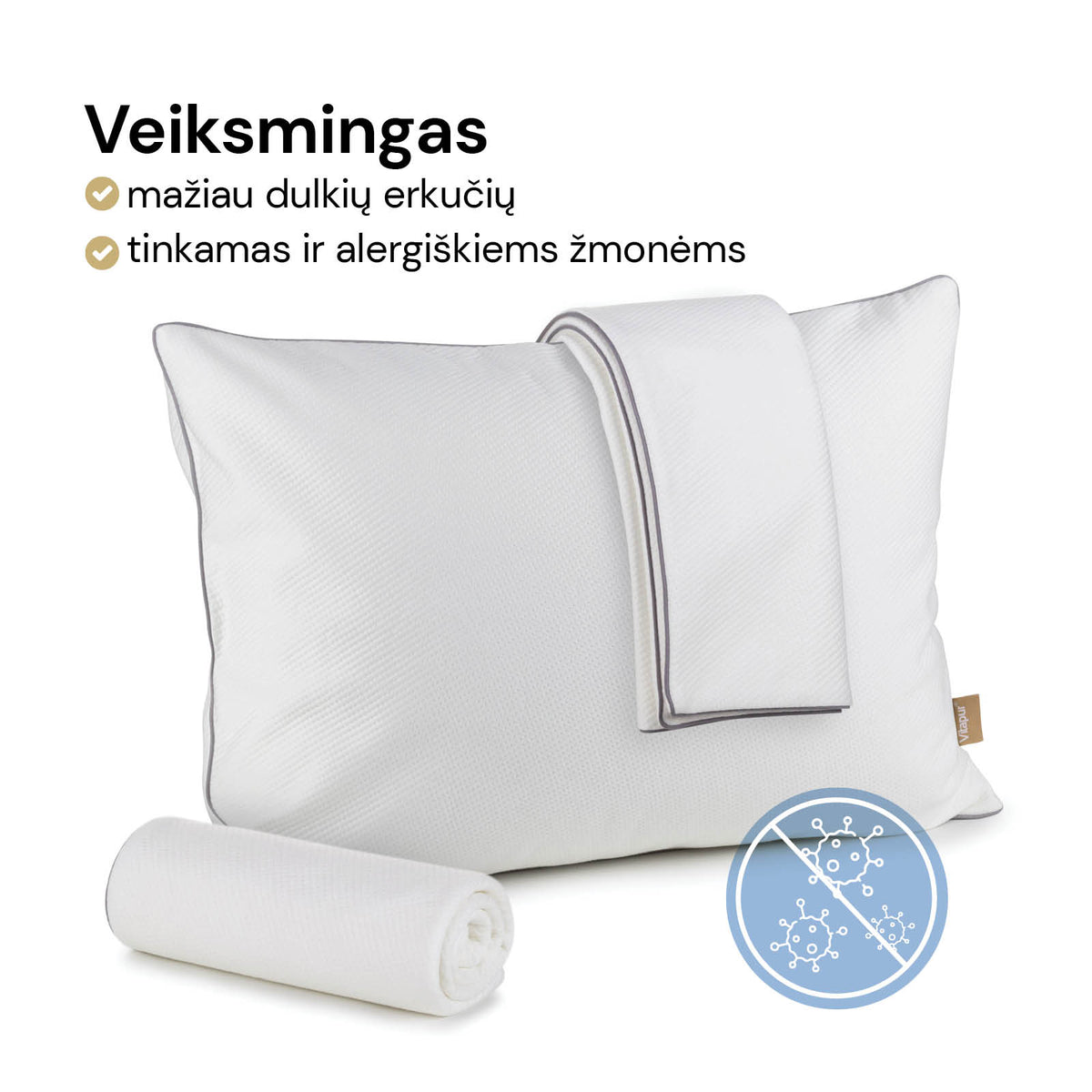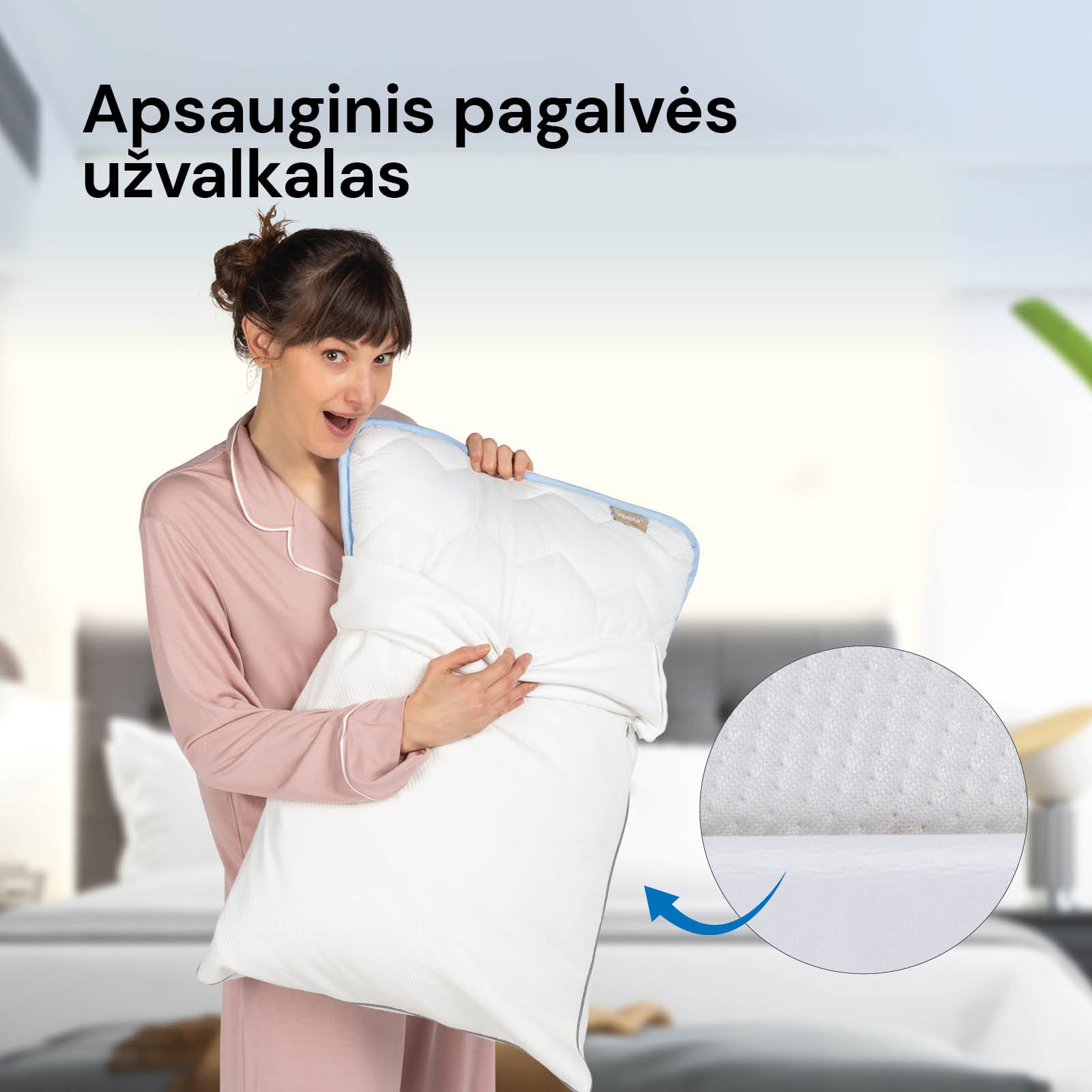 - Pagalvės apsauga, kuri veiksmingai saugo jūsų pagalvę. Tinka alergiškiems žmonėms.