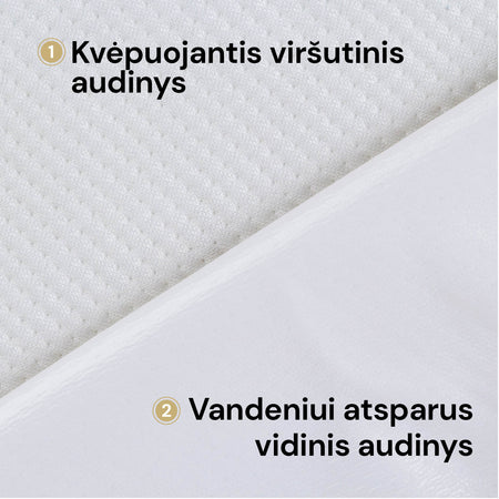 - Vandeniui atspari apsauga padeda kovoti su dulkių erkutėmis, prakaitavimu ir dėmėmis ant pagalvės.