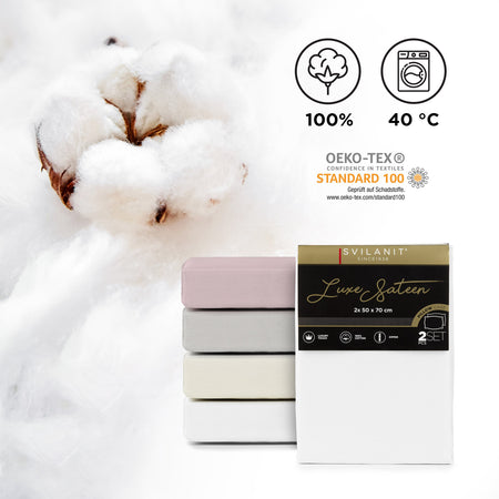 Vidutiniškai jūsų veido oda su pagalvės užvalkalu liečiasi 6–7 valandas per dieną. Štai kodėl mes pasirinkome jums natūralų 100% medvilnės satiną, kuris yra ypač švelnus liesti ir tikrai švelnus kiekvienam odos tipui kiekvieną vakarą. Tuo pačiu metu jis yra patvarus ir lengvai prižiūrimas.