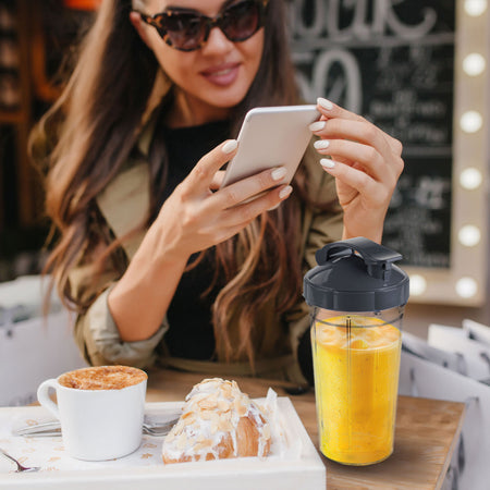 - „Du viename“: Naudokite kaip papildomą indą maišyti „NutriMax“ arba kaip atskirą puodelį pasiimti „į kelionę“.