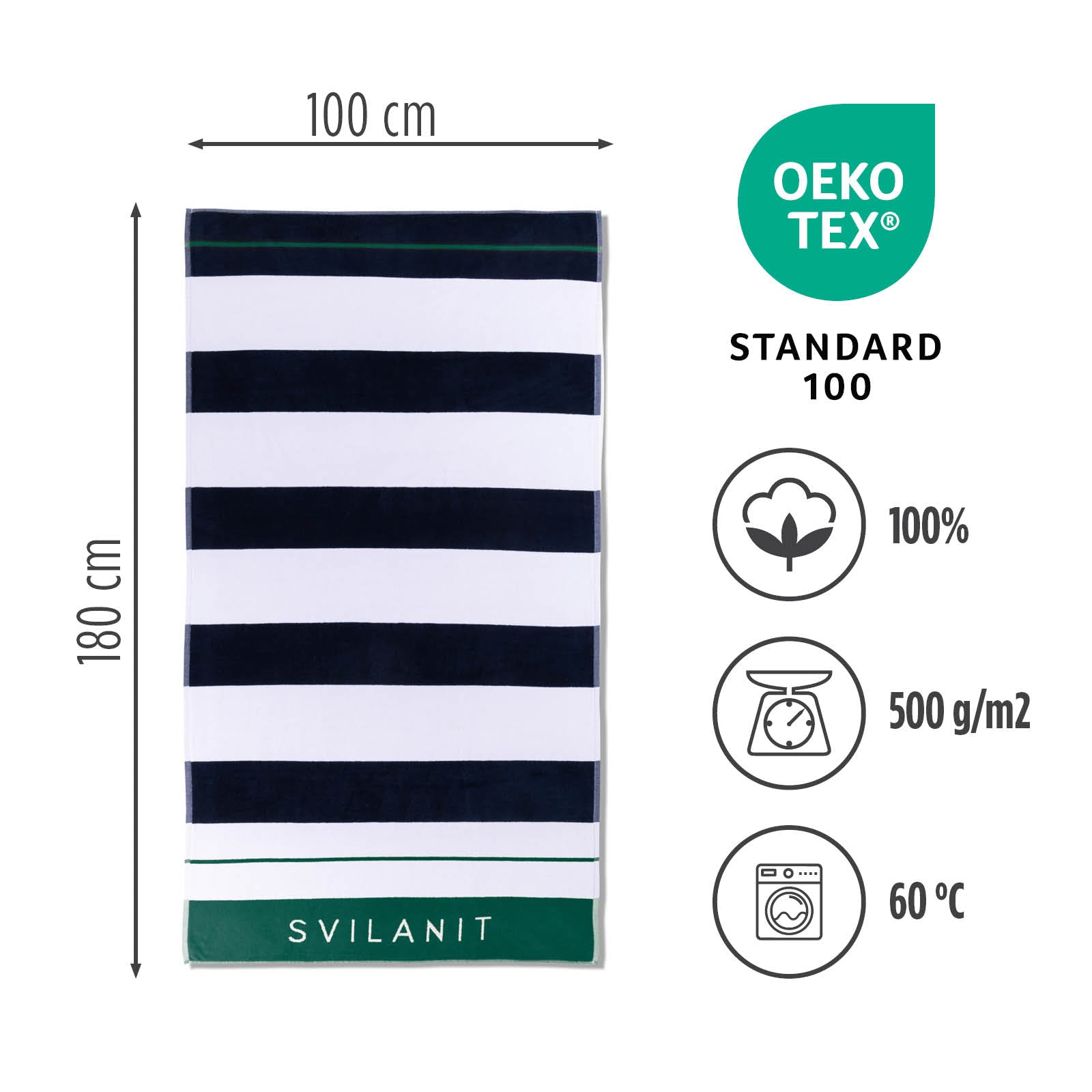 Paplūdimio rankšluosčiai pagaminti iš 100 % medvilnės ir turi prestižinį OEKO-TEX sertifikatą, tai reiškia, kad jie neturi kenksmingų medžiagų ir yra visiškai saugūs naudoti. Natūralios medžiagos ir švelnumas glosto jūsų odą po kiekvieno maudymosi. Rankšluostį taip pat galima naudoti kaip pikniko paklotą arba sporto metu.