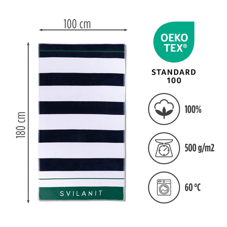 Pajusk tikrą vasaros laisvę su Svilanit paplūdimio rankšluosčiu. Jo dydis suteikia daug vietos visiškam poilsiui saulėje ar maloniame šešėlyje. Itin minkšta ir tankiai austa 100 % medvilnė užtikrina puikų sugeriamumą po kiekvieno maudymosi, o OEKO-TEX sertifikatas garantuoja švelnumą ir saugumą jūsų odai. Pasirinkite mėgstamą dizainą iš įvairių stilingų raštų ir leiskite, kad jūsų rankšluostis taptų jūsų unikalios asmenybės išraiška. Išskleiskite jį prie baseino, pasiimkite į pikniką arba naudokite sporto metu. Po naudojimo tiesiog išskalbkite 60 °C temperatūroje ir išdžiovinkite džiovyklėje – taip jūsų mėgstamas rankšluostis visada bus paruoštas kitam nuotykiui.