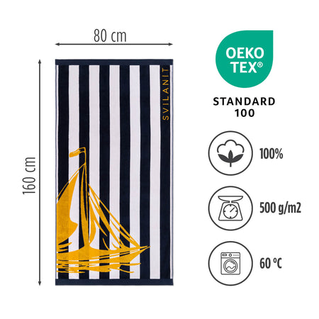 Paplūdimio rankšluostis Ship, 80 x 160 cm