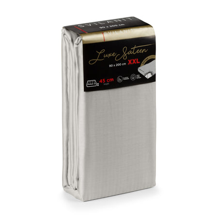 Aukščiausios kokybės XXL Svilanit Luxe Sateen paklodė lengvai tinka aukščiausiems čiužiniams, todėl pagaliau nebejudės ir neslys nuo čiužinio kraštų. Puikiai priglus prie iki 45 cm aukščio čiužinių ir jausite 100 % medvilnės švelnumą kiekvieną naktį. Lankstūs kraštai užtikrina puikų prigludimą prie čiužinio ir lengvą paklojimą. Minkštas medvilninis satino audinys suteiks ramų miegą ir švelnų prisilietimą prie odos kiekvieną naktį. Lengva skalbti 40 °C temperatūroje.