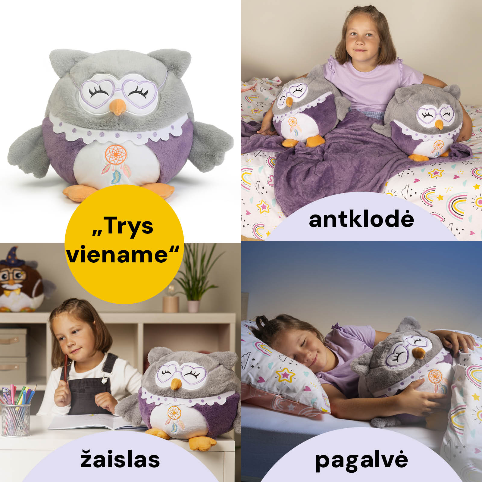 Esu „trys viename“ pelėda: antklodė, žaislas ar pagalvė.