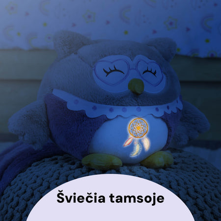Pelėdos turi specialių siuvinėjimą ant pilvo, kuris šviečia tamsoje. Taip vaikui bus dar lengviau tamsoje surasti žaislą ir vėl jį suspausti.