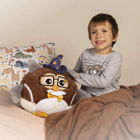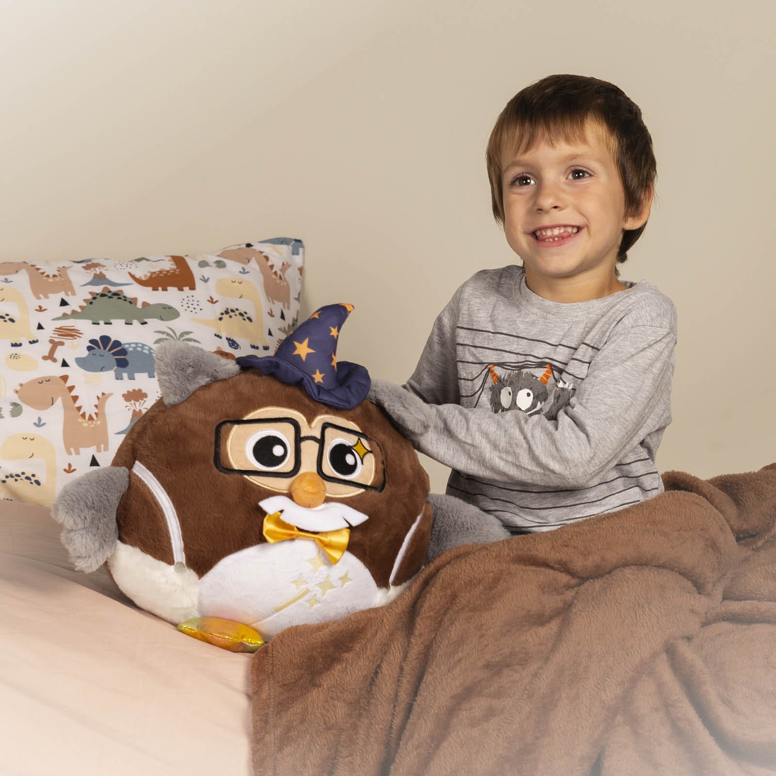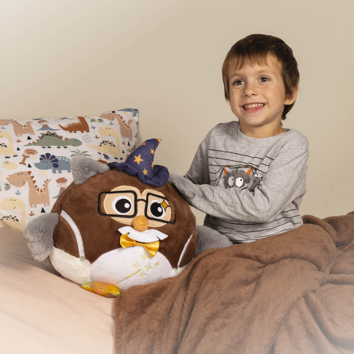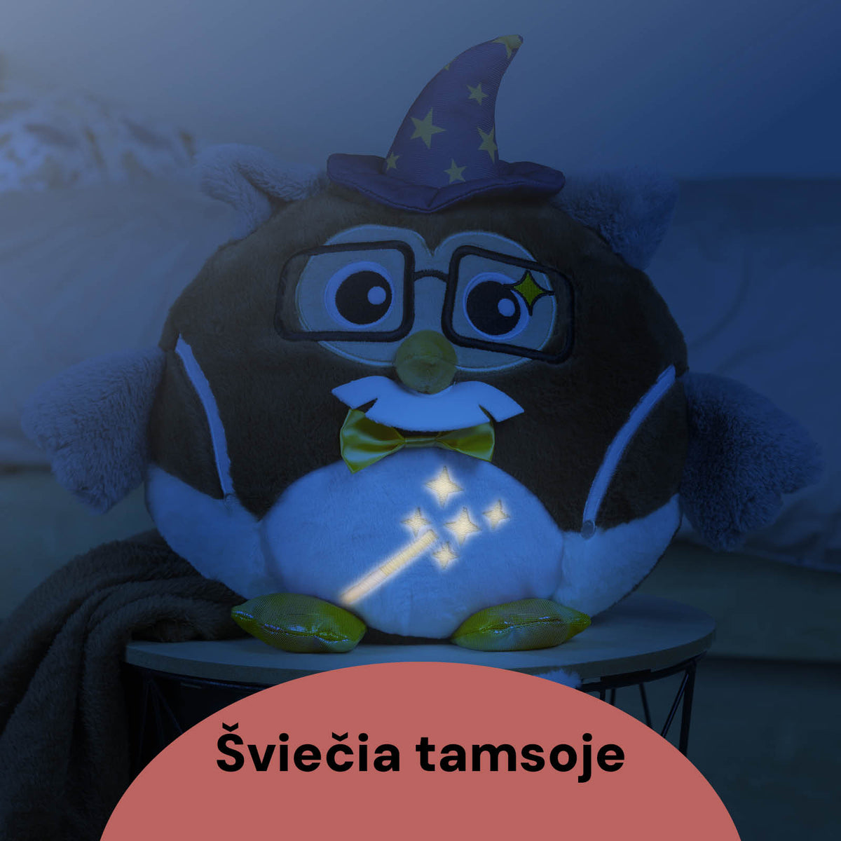 Susipažinkite su seneliu Filipu – pelėda, turinčia super galių, ir nudžiuginkite vaikus. Sukūrėme specialią pelėdų šeimą, kuri padeda vaikams greičiau užmigti ir mokytis malonesnėje aplinkoje. Siuvinėjimai ant pilvukų šviečia tamsoje, todėl vaikas naktį gali lengvai surasti žaislą ir vėl jį prispausti. Su pridedama minkšta antklode, paslėpta pelėdos viduje, mažiesiems niekada nebus šalta.