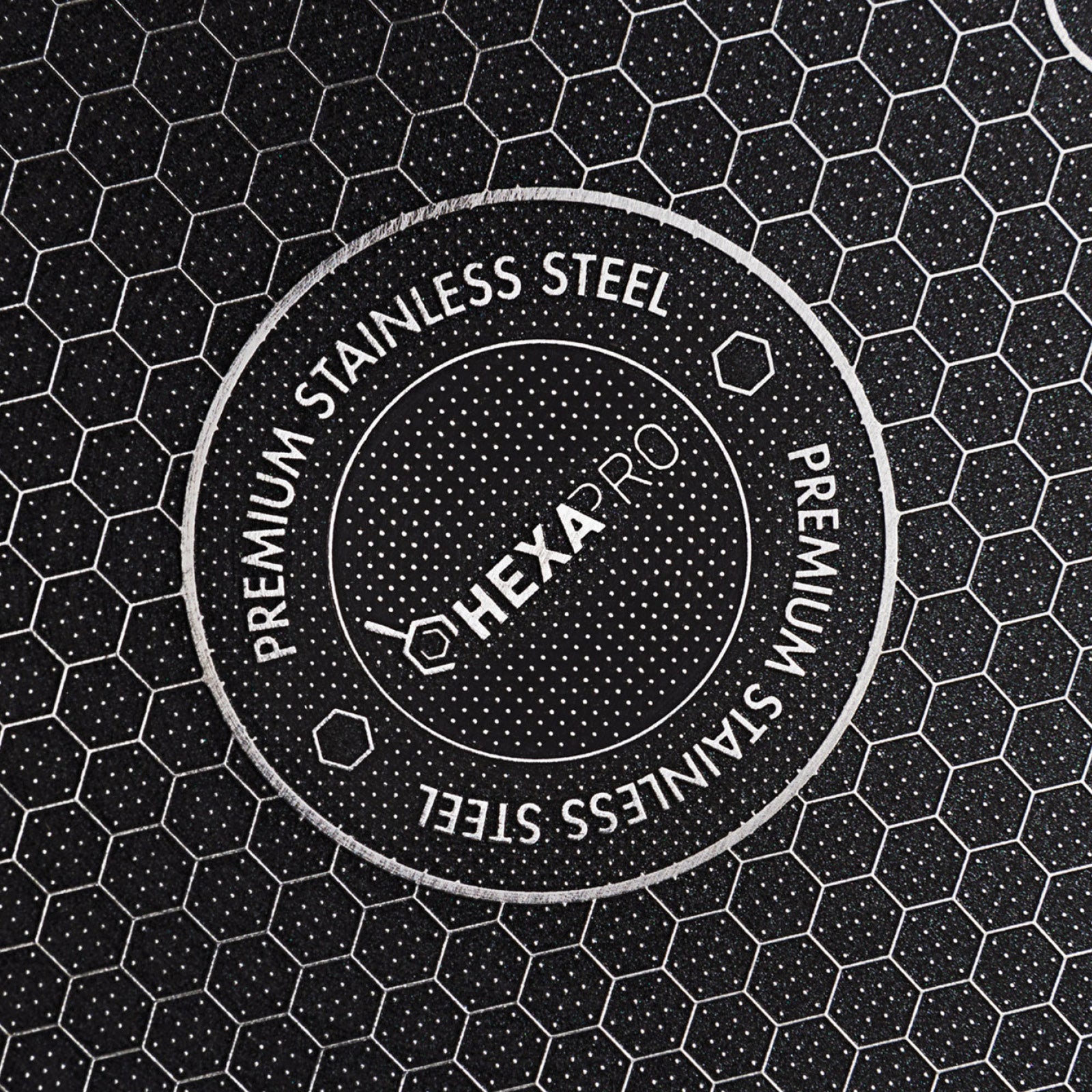Pristatome naują tobulumo sinonimą: nerūdijančiojo plieno ilgaamžiškumas ir nelimpančio paviršiaus patogumas, kuris dar labiau palengvina gaminimą. HexaPRO – tai inovatyvios hibridinės technologijos rezultatas, sujungiantis daugiasluoksnę indų konstrukciją profesionaliems rezultatams pasiekti. Tai premium klasės virtuvės indai, kurie pakylėja jūsų kulinarinius įgūdžius į aukštesnį lygį.