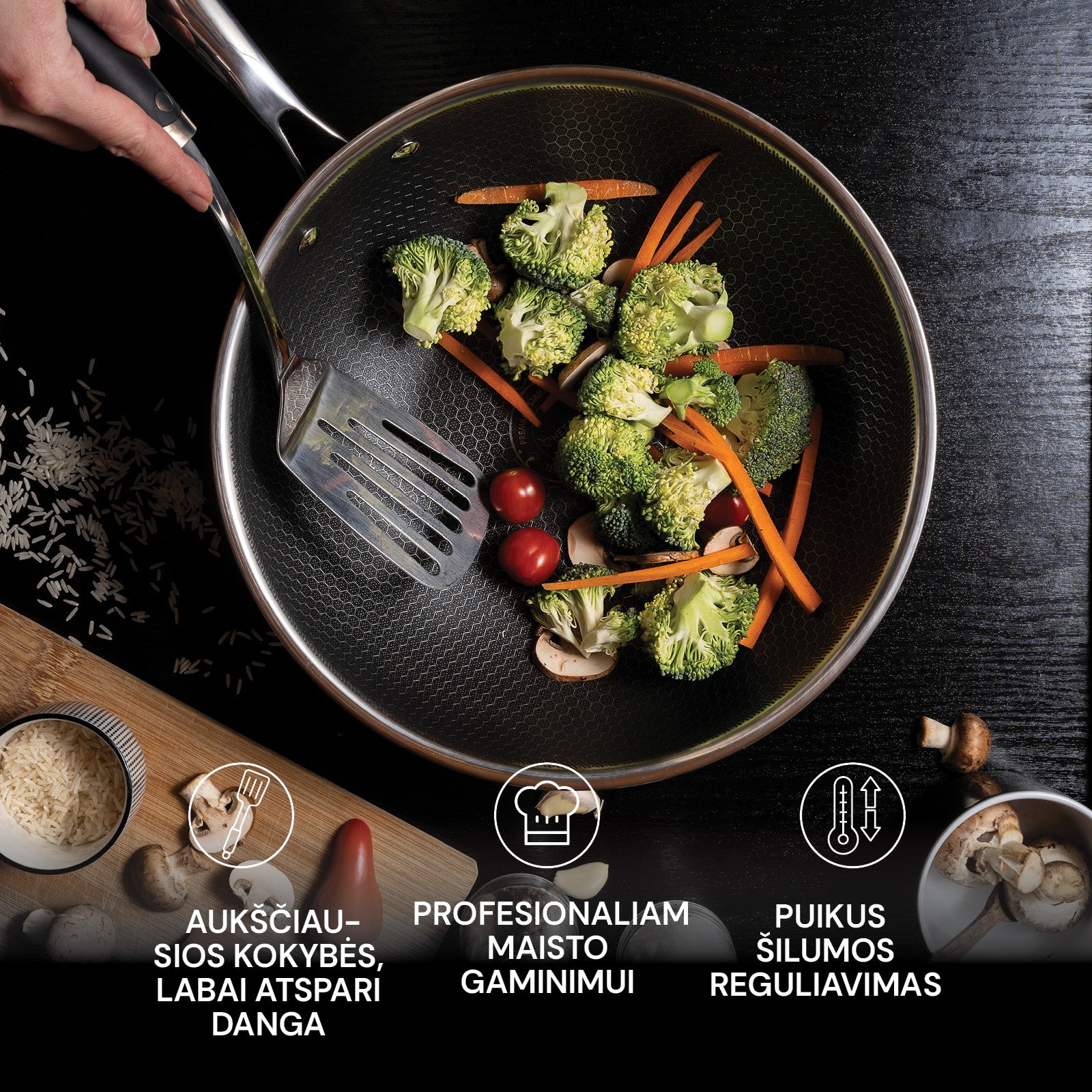 Premium wok keptuvė Rosmarino HexaPRO – 28 cm