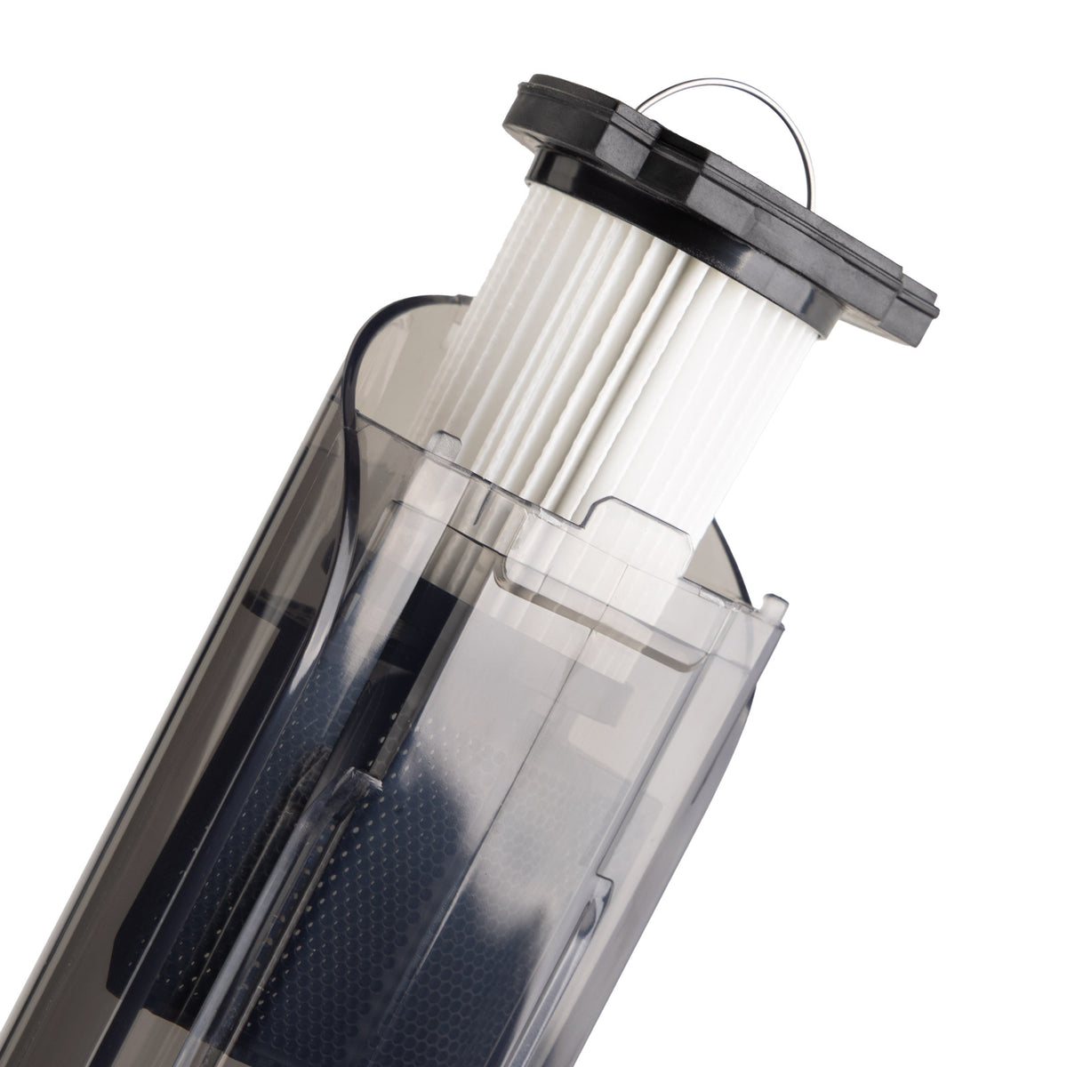 Plaunamas HEPA filtras sulaiko smulkias dulkes ir alergenus, užtikrindamas švaresnį orą. Po naudojimo tiesiog praplaukite jį po tekančiu vandeniu. Dulkių talpą galima ištuštinti vienu spustelėjimu – be sąlyčio su nešvarumais.