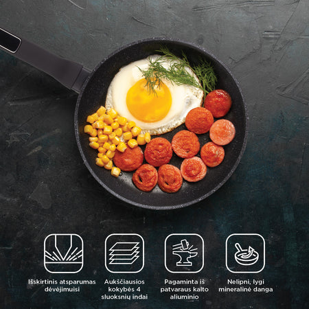 Aukštos kokybės nelimpanti mineralinė danga leidžia gaminti naudojant minimalų riebalų kiekį, todėl patiekalai yra sveikesni, tačiau išlaiko tą patį puikų skonį ir maistines medžiagas. Kadangi kaltinio aliuminio indai įkaista ypač greitai ir efektyviai, ruošdami maistą sugaišite mažiau laiko ir energijos.