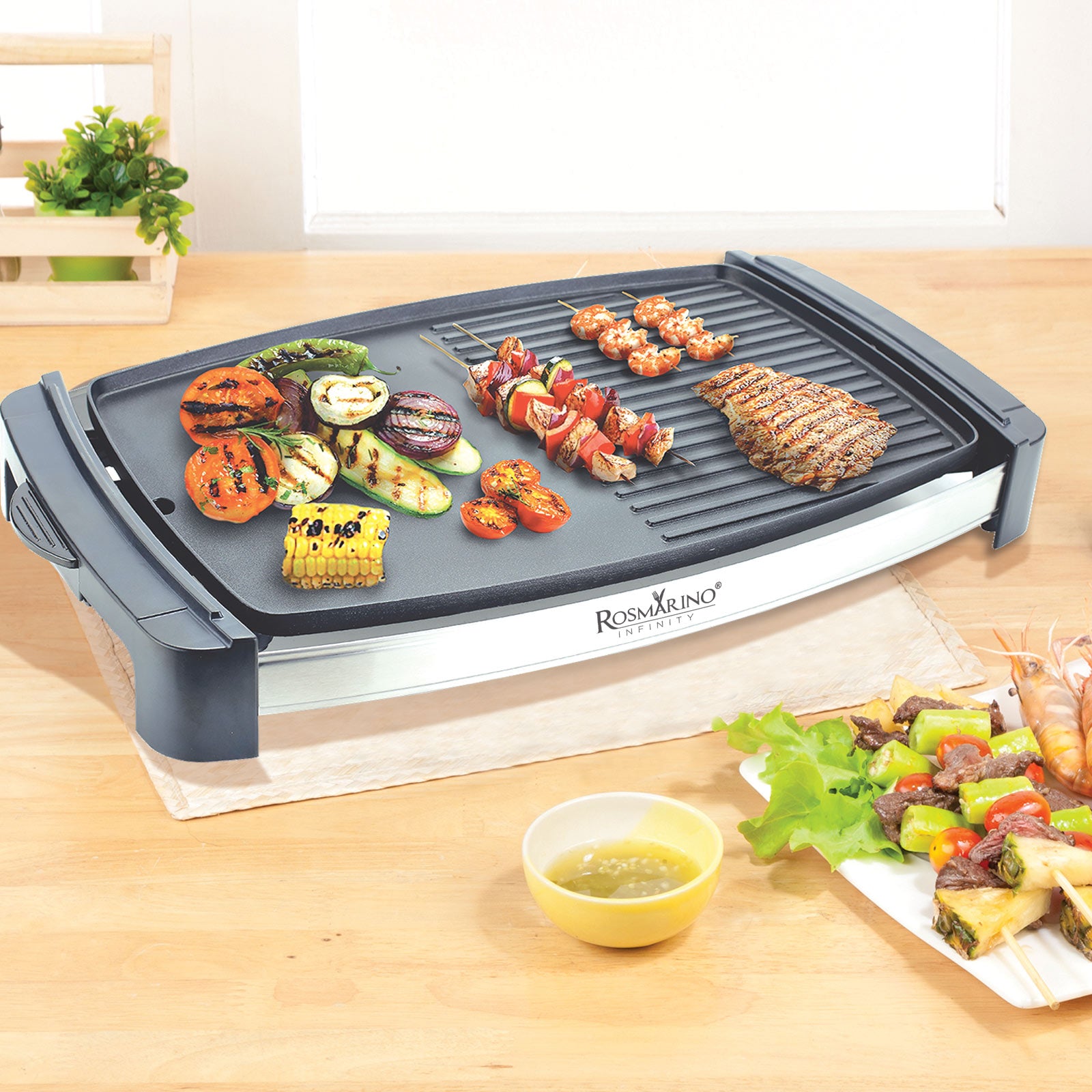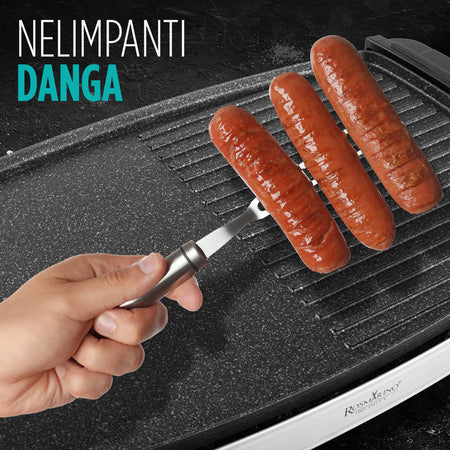 Kepkite ant grilio bet kokiu oru. Rosmarino elektrinis grilis leidžia apversti mėgstamus ant grotelių keptus patiekalus bet kur, net balkone, kieme, lauko virtuvėje ar atostogų metu. Grilio plokštė turi lygų ir grioveliais išraižytą paviršių, todėl lengviau pasirinkti, kur ruošti mėsą, daržoves, kiaušinius, mėsainius, žuvį ar net blynus. Neprideganti danga sumažina maisto prilipimą prie paviršiaus, todėl kepti ant grilio ir jį valyti bus paprasta. Visur nustebinkite savo svečius puikiais skoniais ir ant grilio keptų patiekalų pasirinkimu.