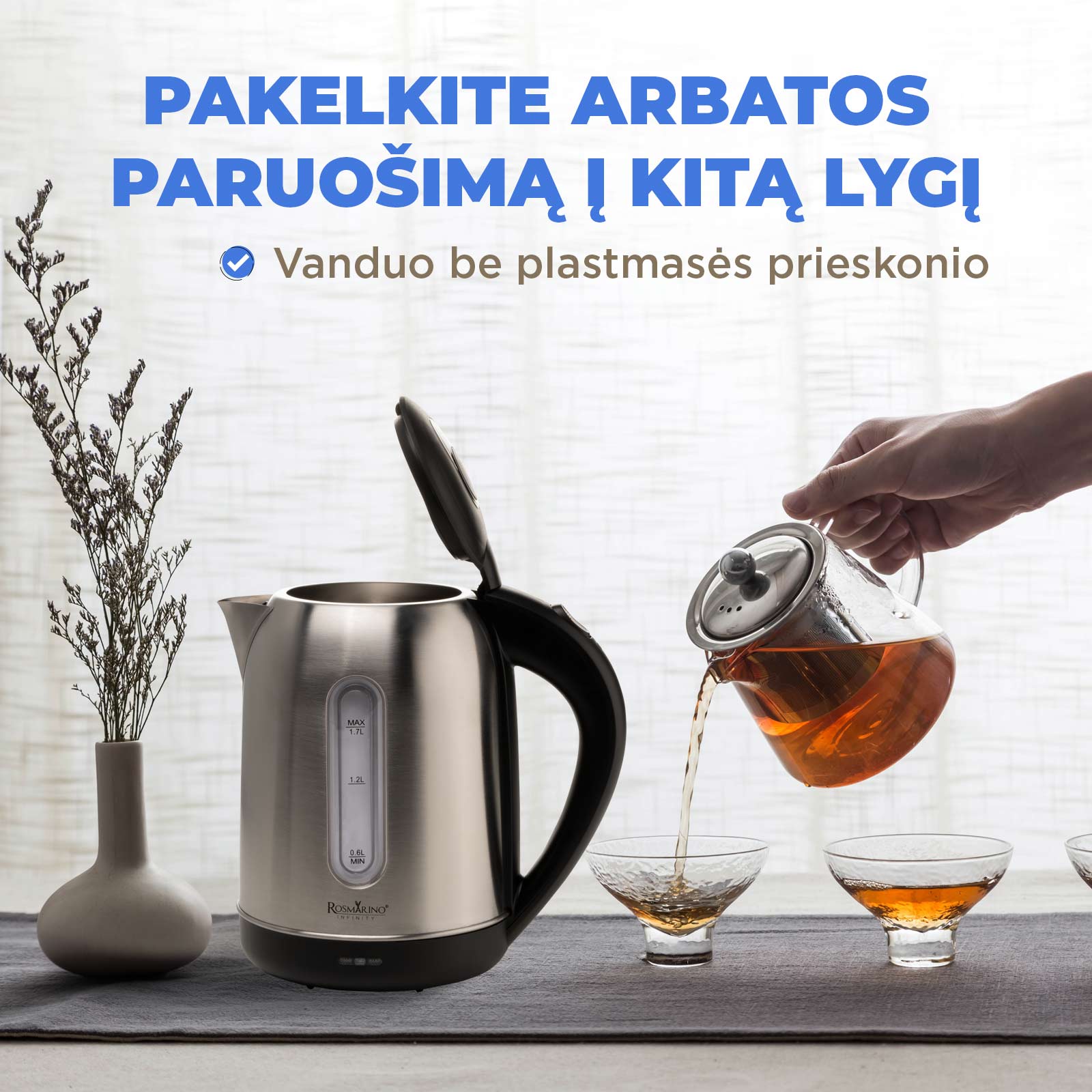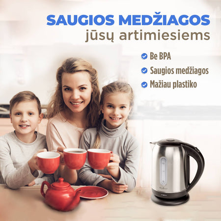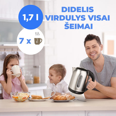 1,7 litro talpos pakaks 7 puodeliams ir puikiai tiks visai šeimai! Mėgaukitės taip lengvai paruošdami mėgstamą žaliąją, juodąją, žolelių arbatą, kavą ar kitus karštus gėrimus.