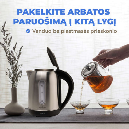 Rosmarino Infinity nerūdijančio plieno elektrinis virdulys - lengvai ir greitai pašildysite vandenį! Tegul kavos ar kitų gėrimų ruošimas tampa jūsų nauja mėgstamiausia užduotimi kiekvieną dienos dalį. 1,7 litro talpos virdulys greitai pašildys iki 7 puodelių vandens. Pagamintas iš patvaraus nerūdijančiojo plieno, kad būtų išvengta tiesioginio kontakto su plastiku ir kad galėtumėte saugiai paruošti gėrimą.