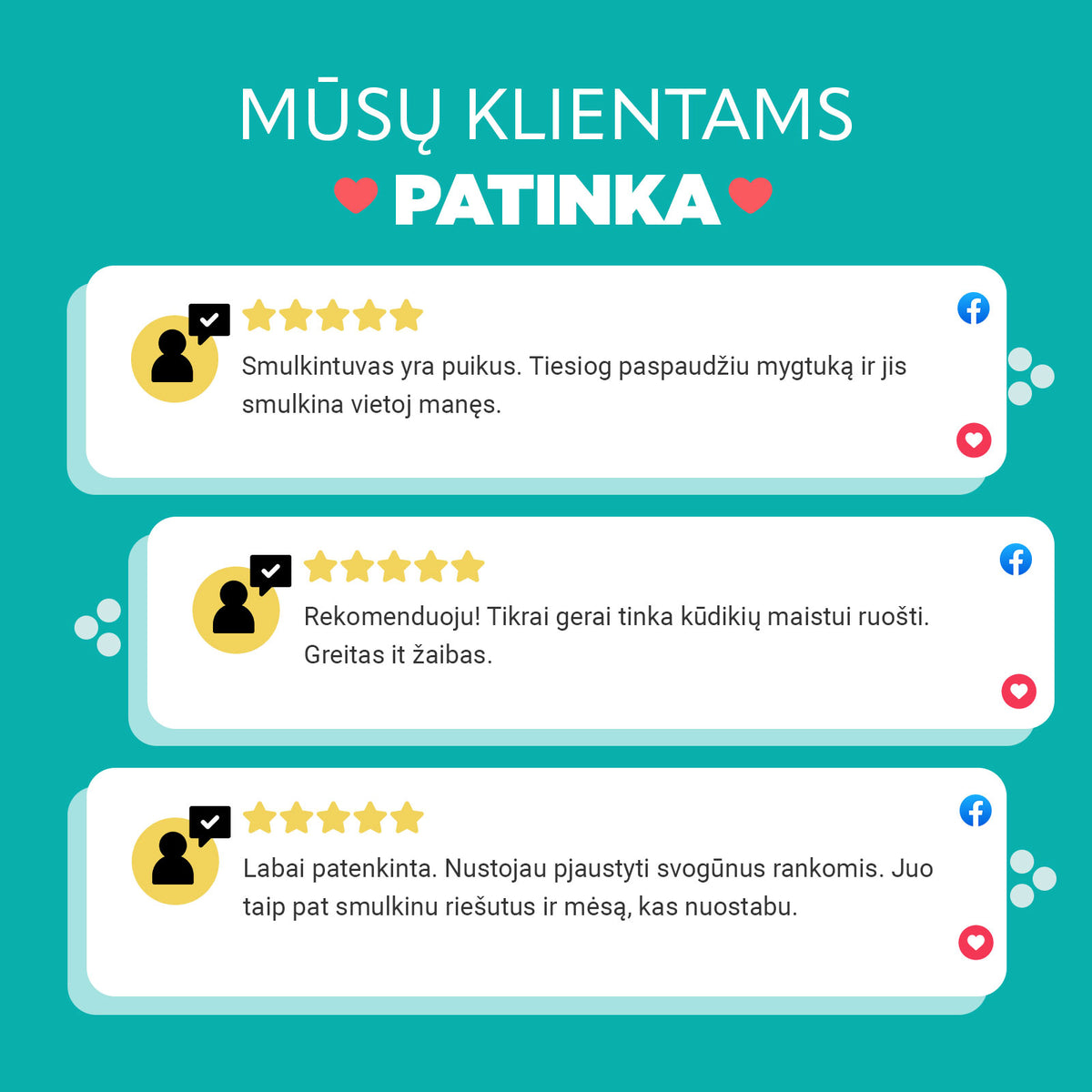 - Puikus įrankis tiems, kurie neturi daug laiko maistui ruošti ir ieško greito bei paprasto būdo smulkiai arba stambiai sumalti įvairius maisto produktus.