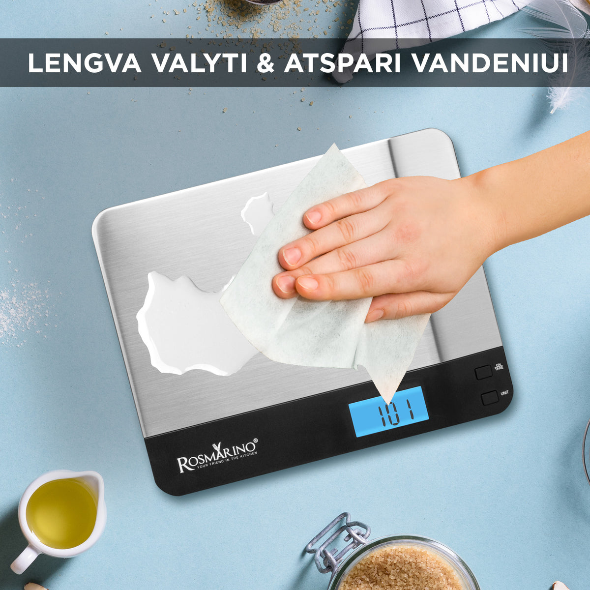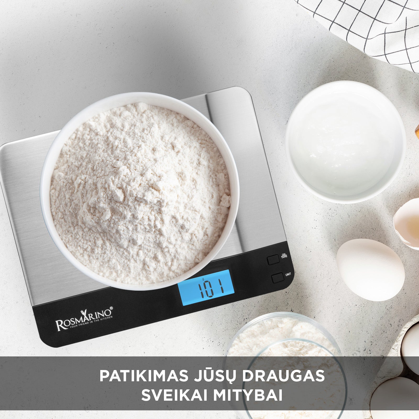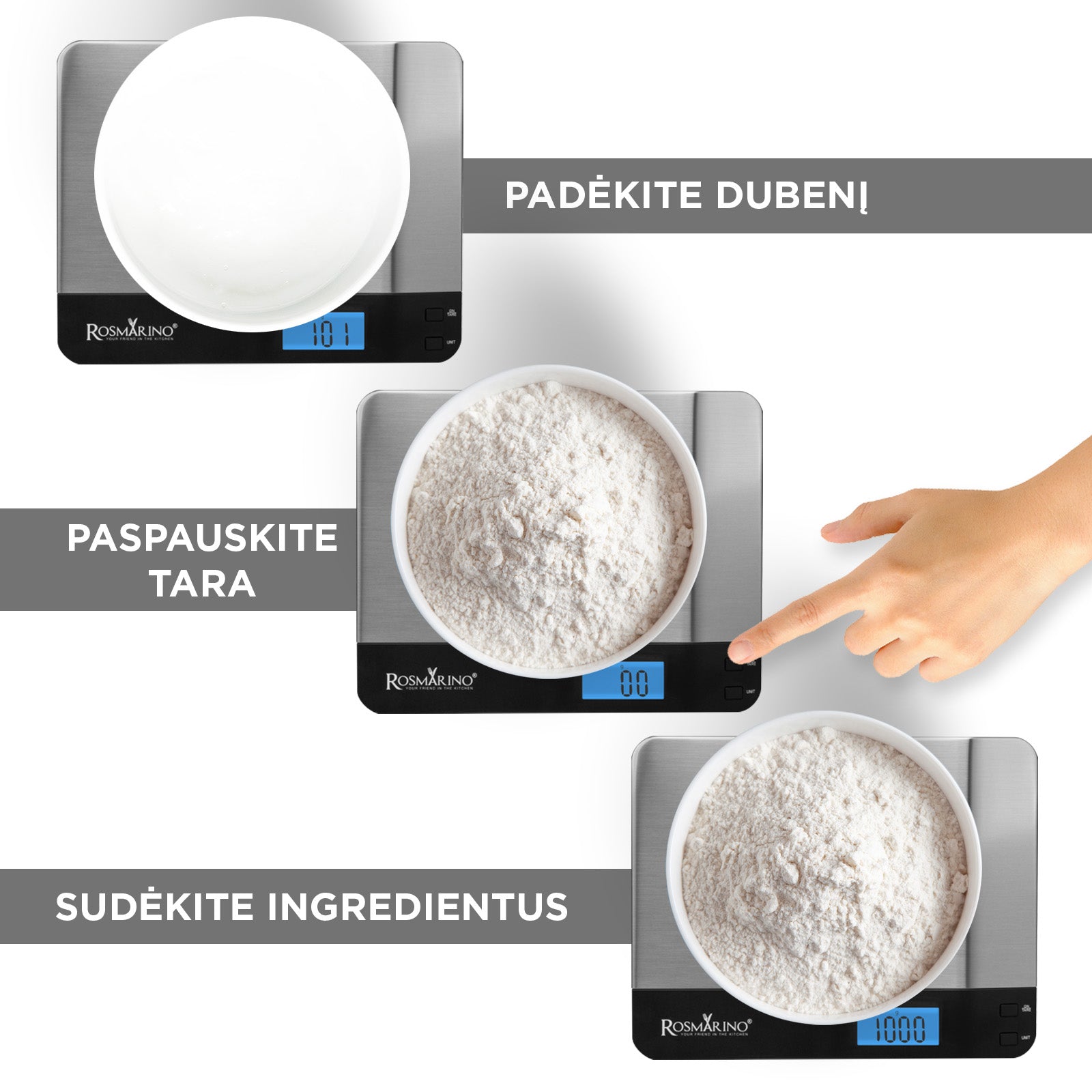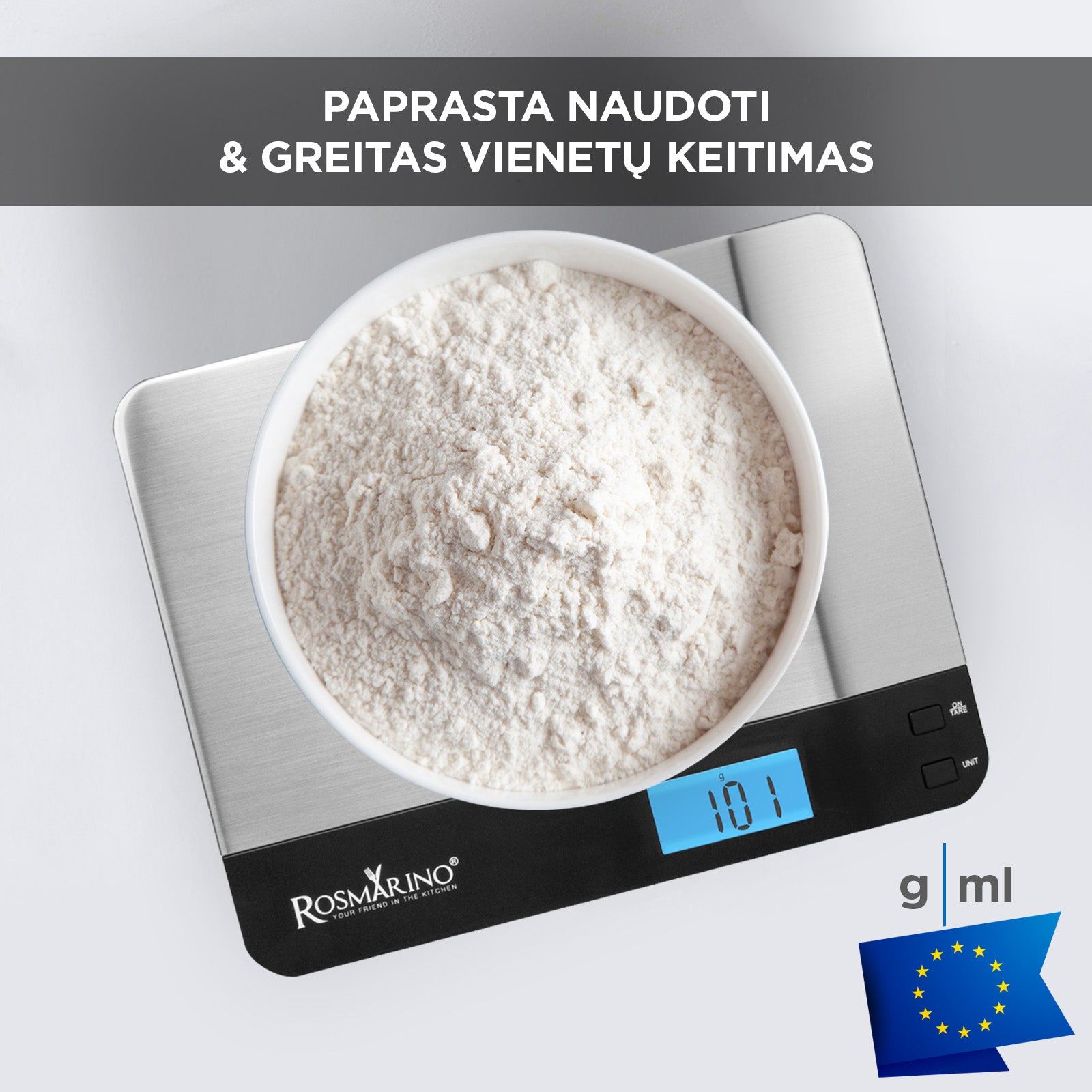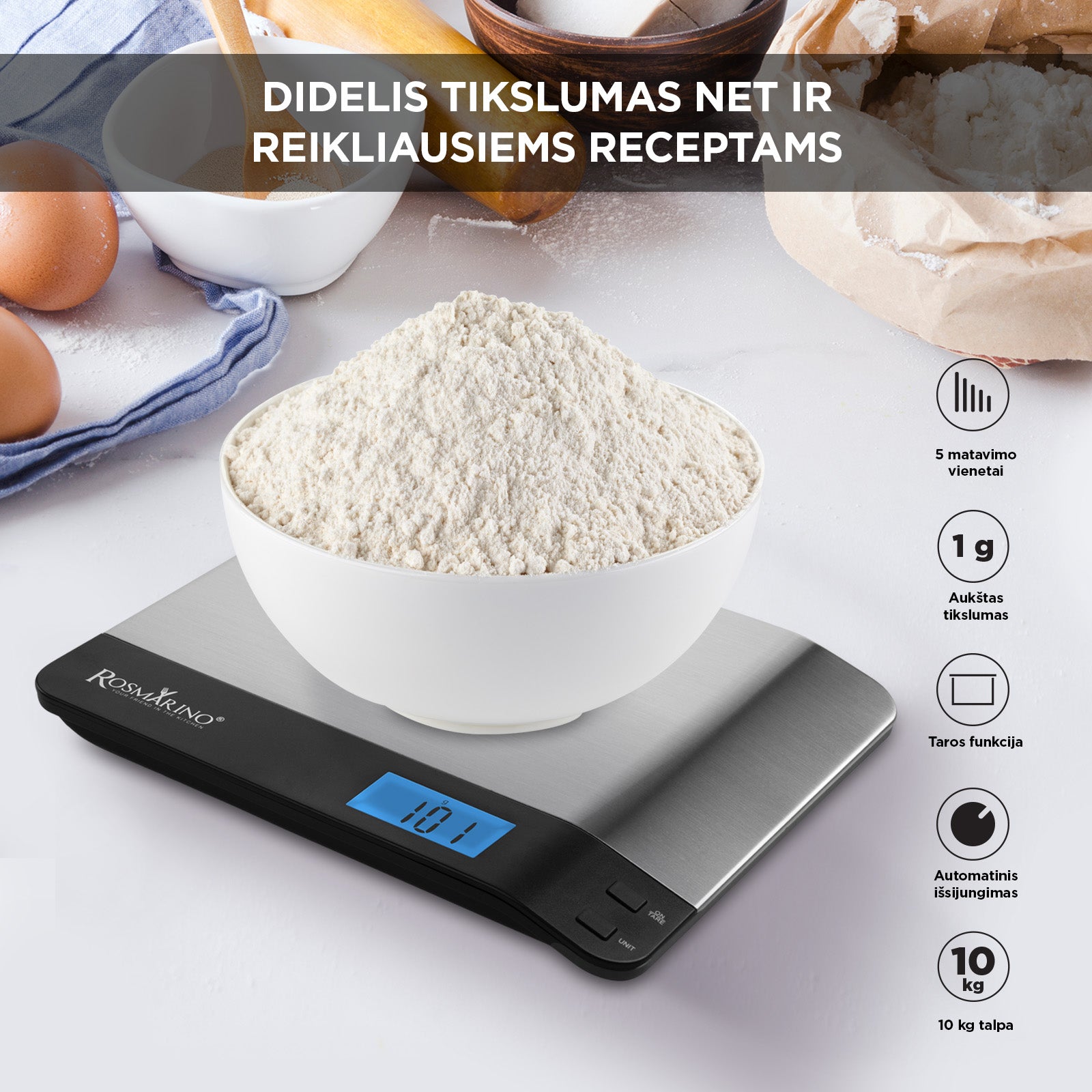 - Su Rosmarino Infinity skaitmeninėmis virtuvinėmis svarstyklėmis galėsite tiksliau išmatuoti daugiau ingredientų.