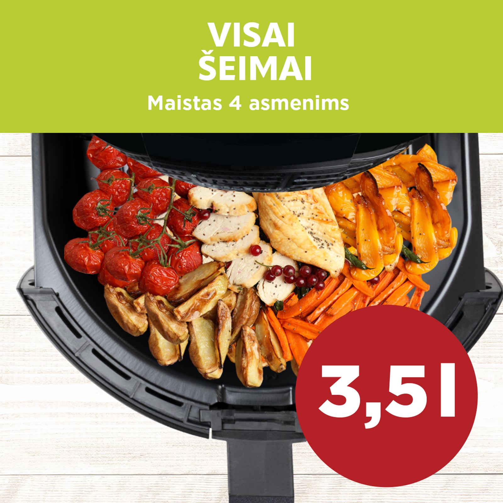 Dar paprastesnis naudojimas! Ir geros naujienos? Karšto oro gruzdintuvė gruzdins ir keps vietoj jūsų.
